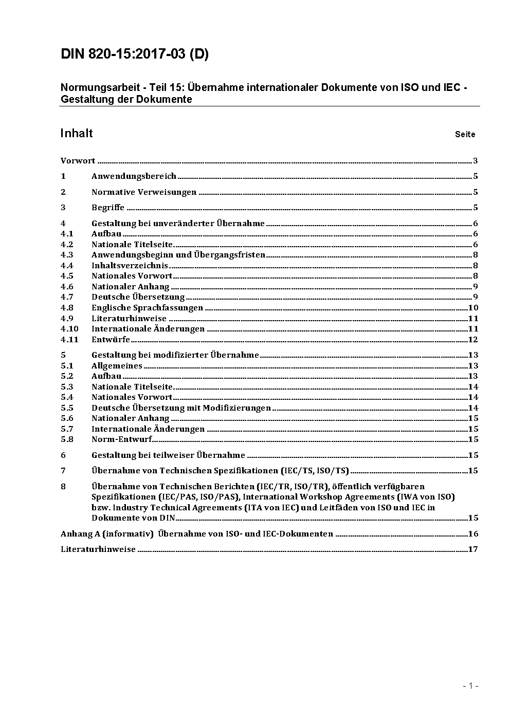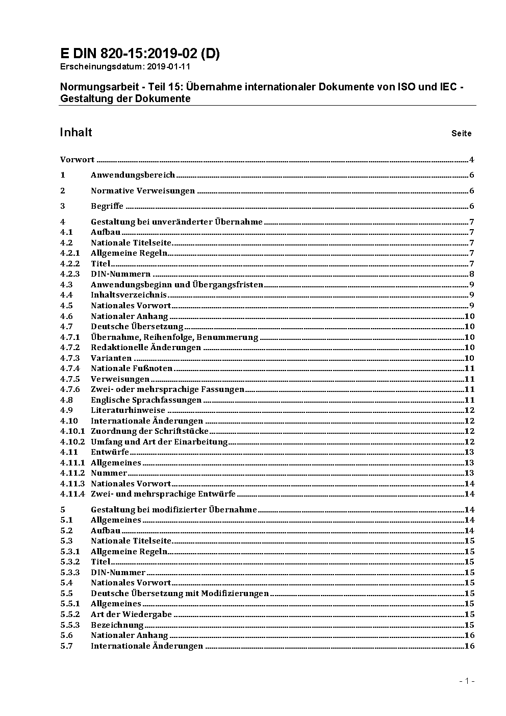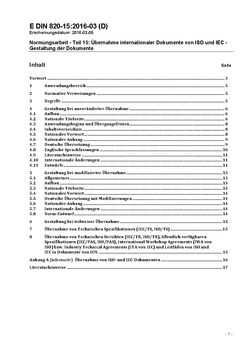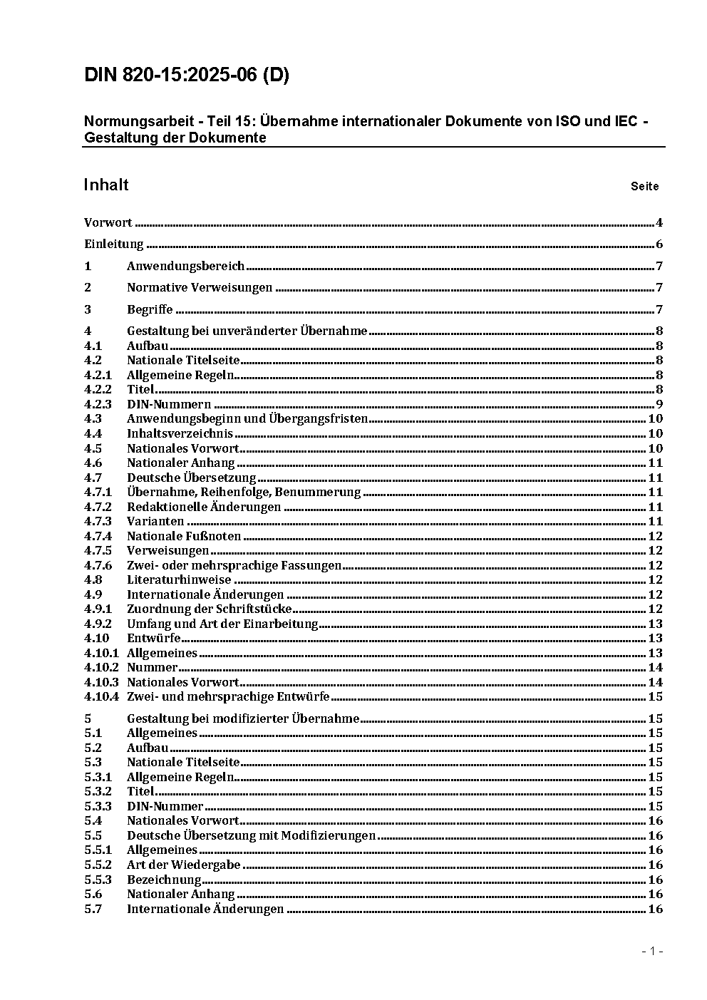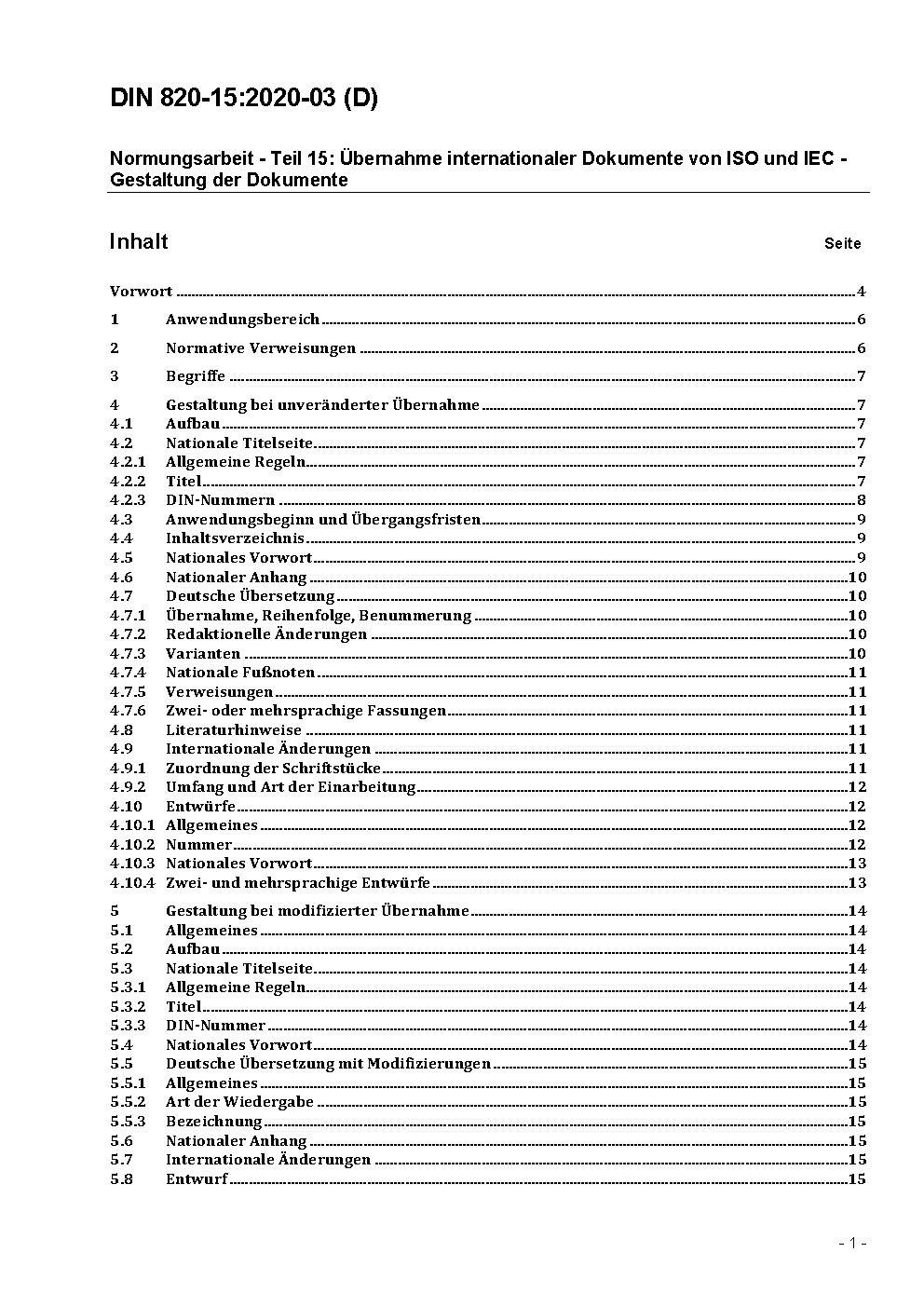 Normungsarbeit - Teil 15: Übernahme von Internationalen Normen der ISO und der IEC; Begriffe und Gestaltung