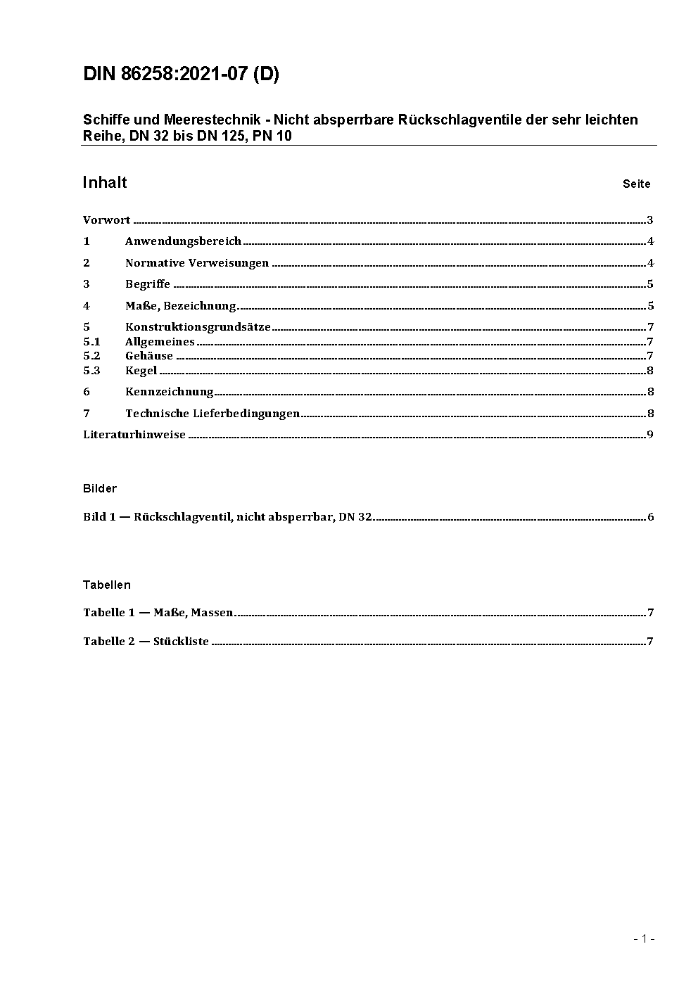 Schiffe und Meerestechnik - Nicht absperrbare Rückschlagventile der sehr leichten Reihe, DN 32 bis DN 125, PN 10