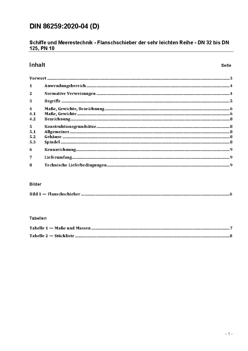 Schiffe und Meerestechnik - Flanschschieber der sehr leichten Reihe DN 32 bis DN 125, PN 10