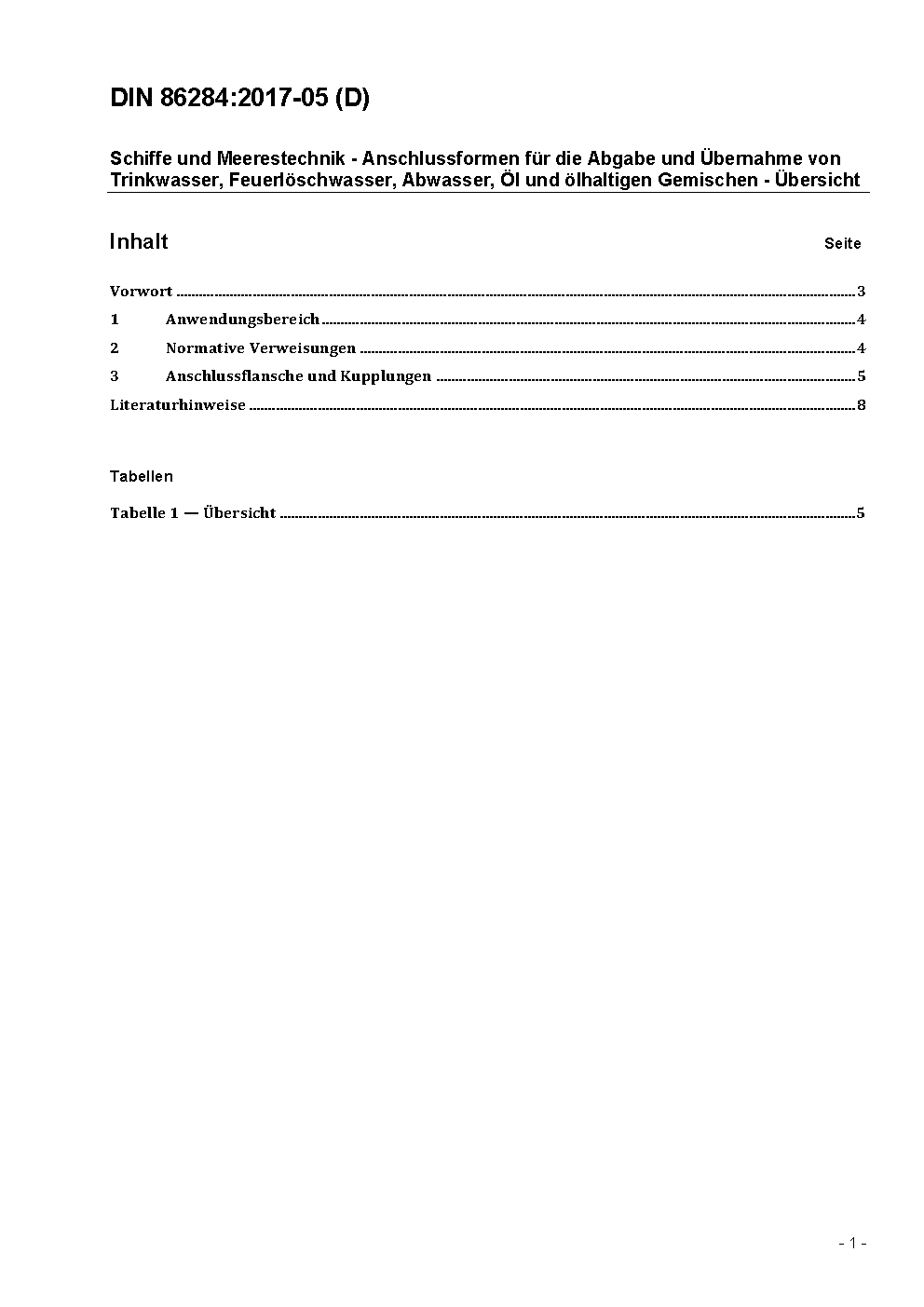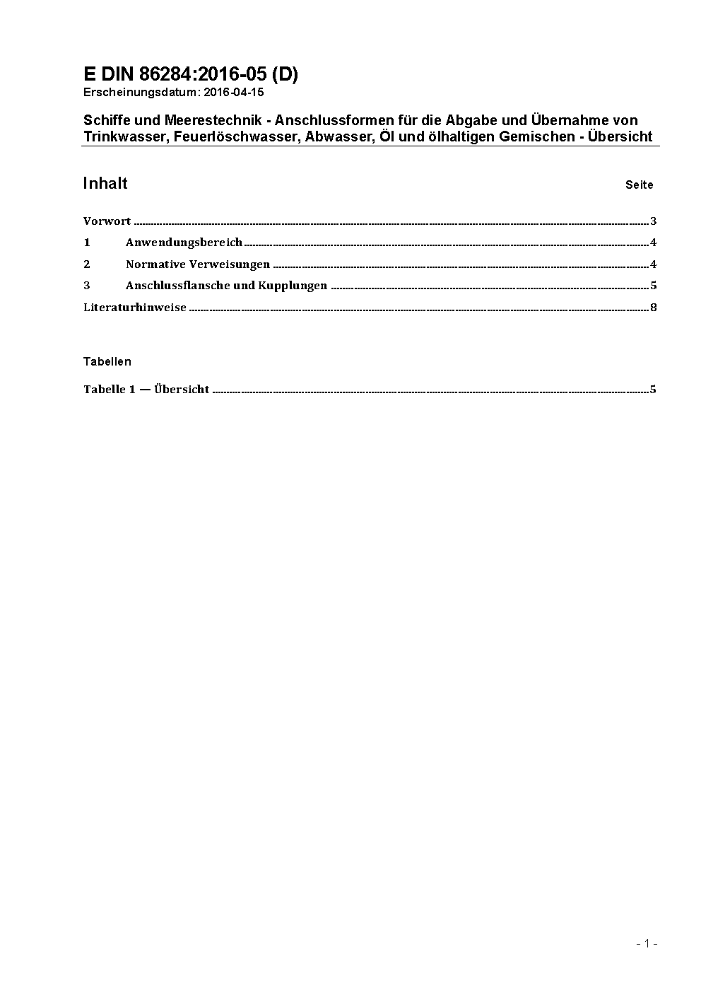 The document provides a survey of types of joints (flanges and coupling pieces) for the supply or discharge of potable water, fire-fighting water, sewage, oil and oily mixtures which are laid down in international regulations or which are in use.