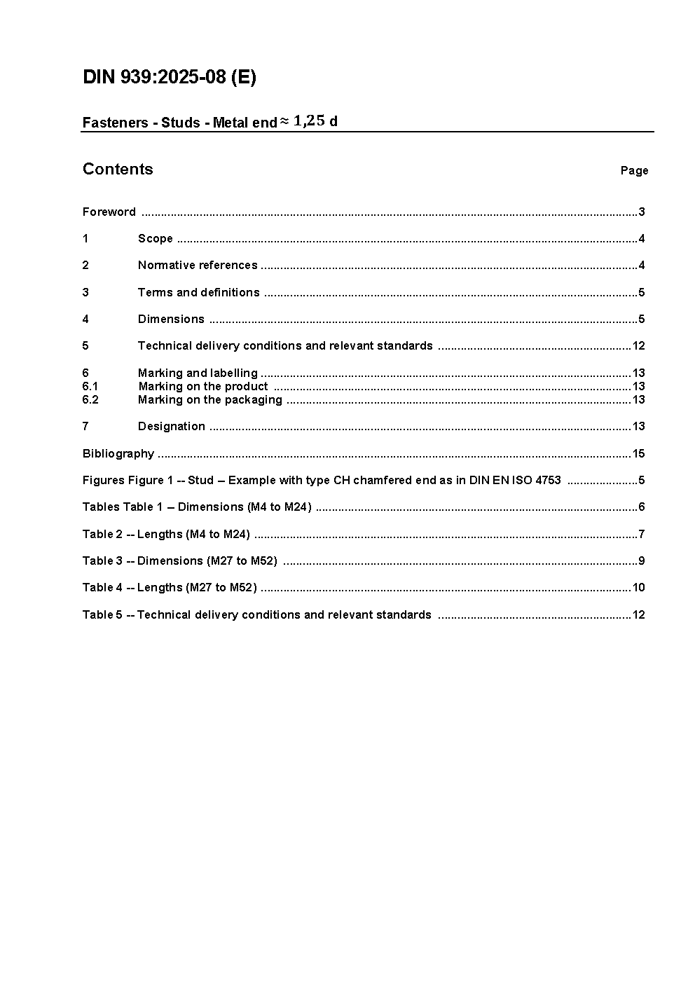 This document contains dimensional and technical requirements of studs, metal end ? 1,25 d and specifies their designation.