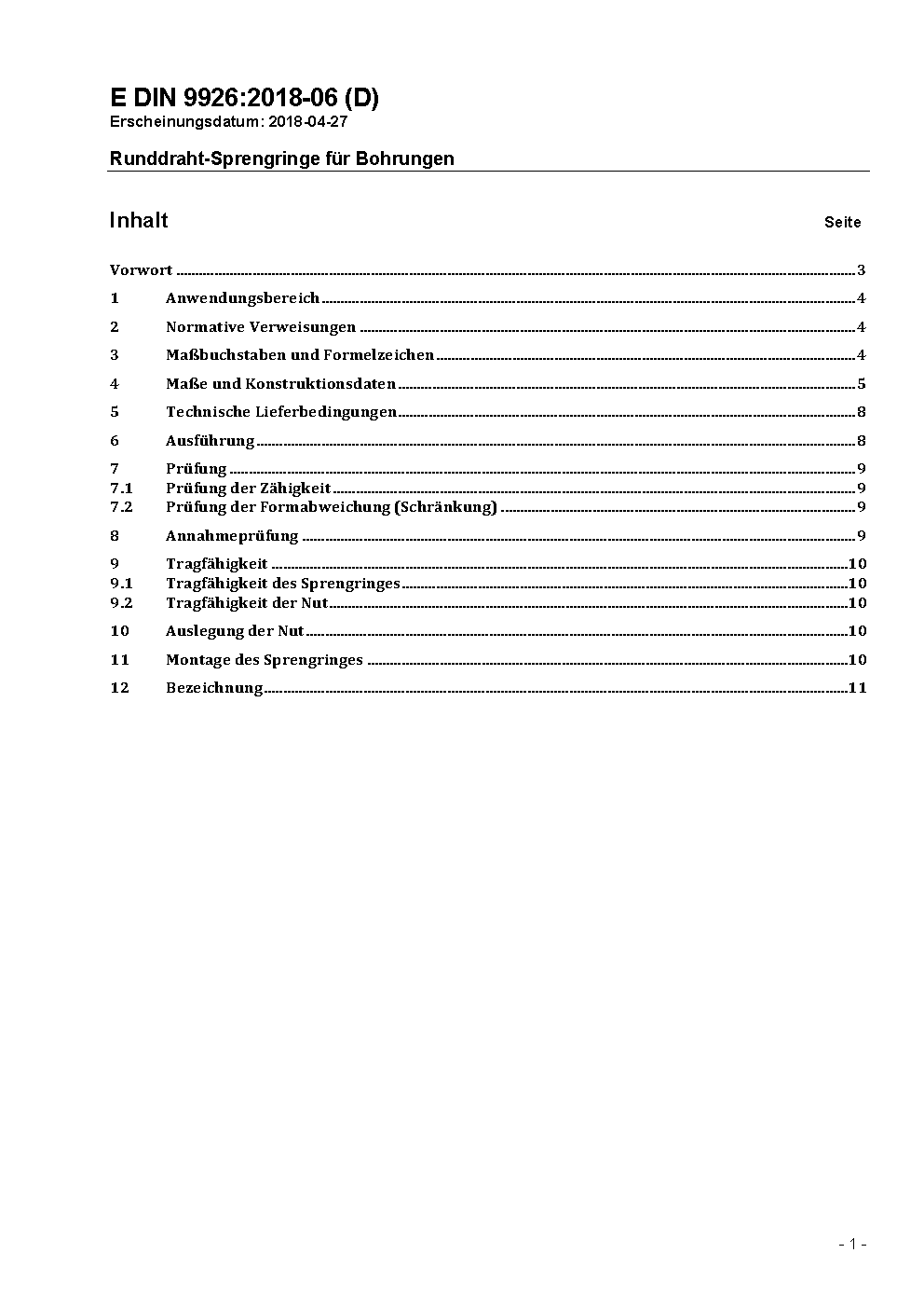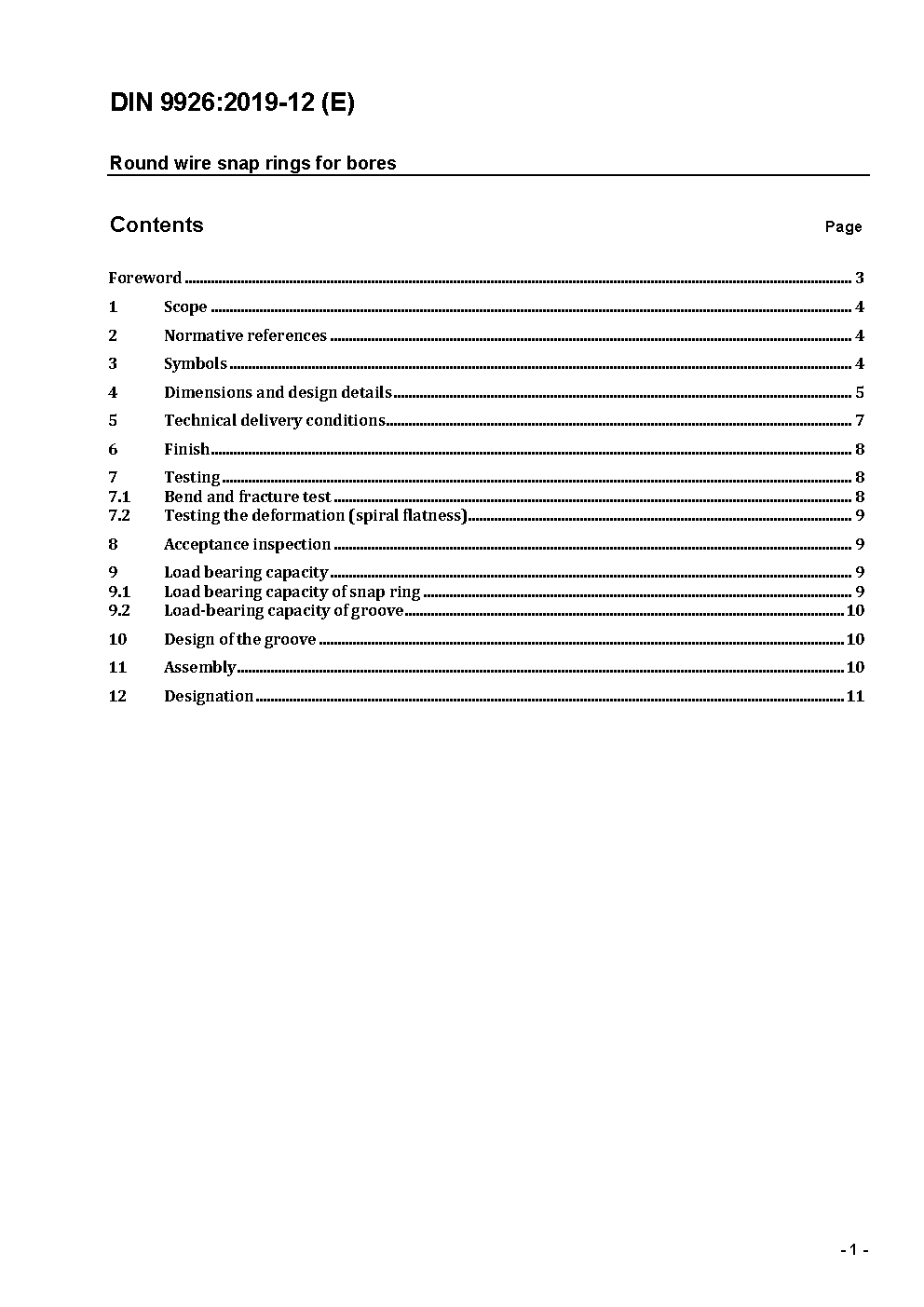 This document specifies requirements for round wire snap rings for bores and the corresponding grooves. Round wire snap rings are used to hold components or assemblies in bores and are suitable for the transmission of axial forces.