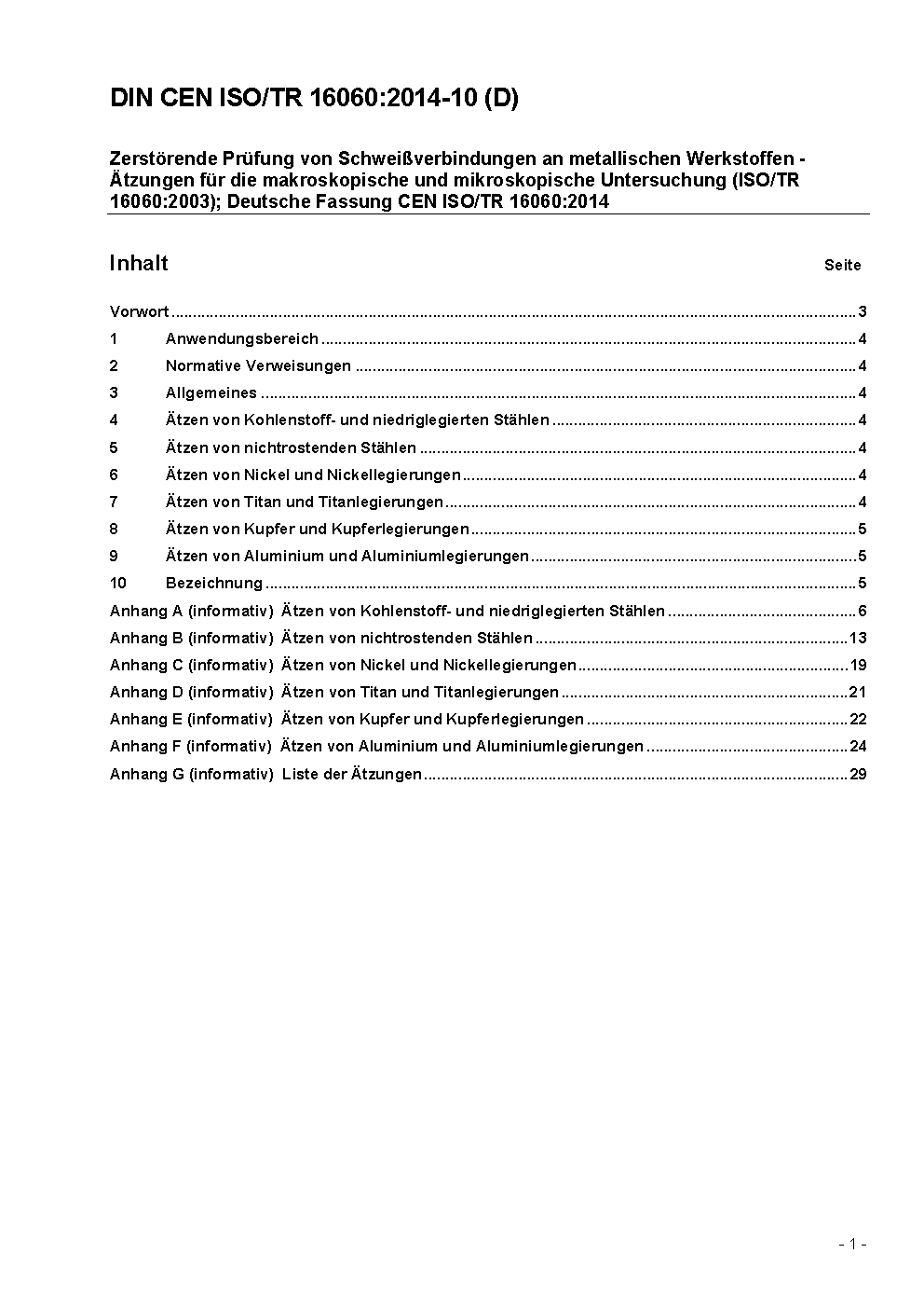 Destructive tests on welds in metallic materials - Etchants for macroscopic and microscopic examination (ISO/TR 16060:2003); German version CEN ISO/TR 16060:2014