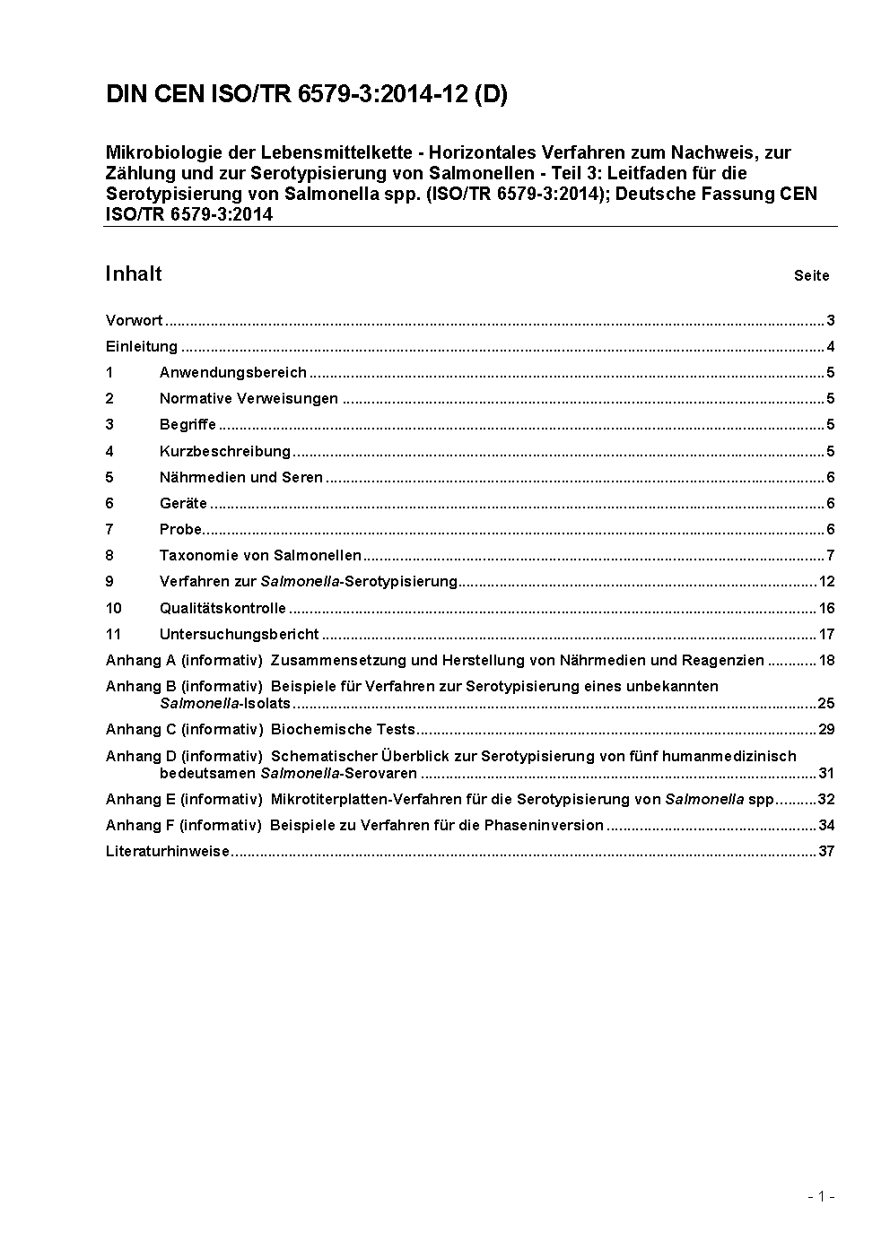 Microbiology of the food chain - Horizontal method for the detection, enumeration and serotyping of Salmonella - Part 3: Guidelines for serotyping of Salmonella spp. (ISO/TR 6579-3:2014); German version CEN ISO/TR 6579-3:2014