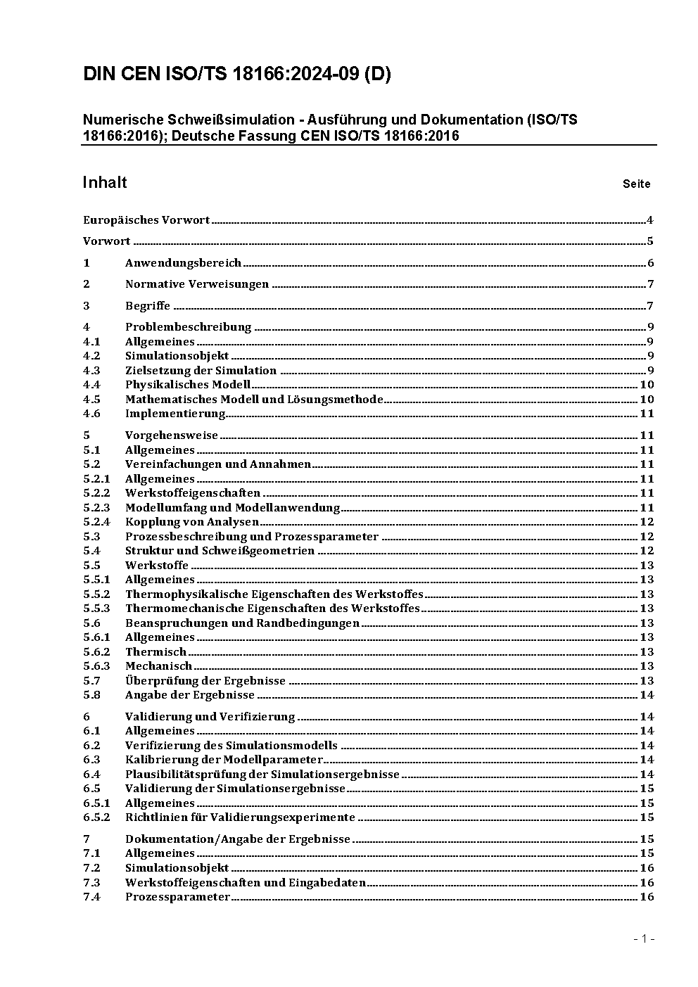 Numerische Schweißsimulation - Ausführung und Dokumentation (ISO/TS 18166:2016); Deutsche Fassung CEN ISO/TS 18166:2016