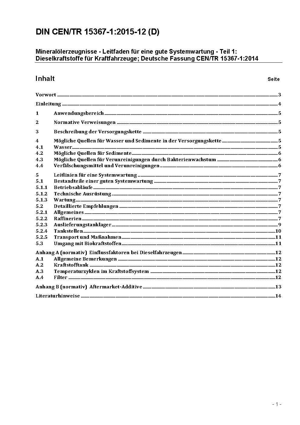 Petroleum products - Guidelines for good housekeeping - Part 1: Automotive diesel fuels; German version CEN/TR 15367-1:2014