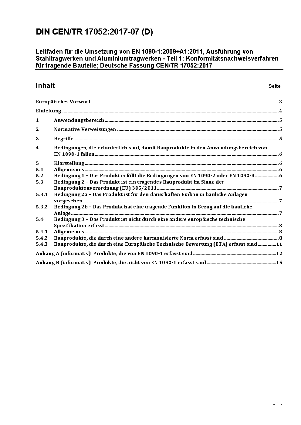 Guidelines on implementing EN 1090-1:2009+A1:2011, Execution of steel structures and aluminium structures - Part 1: Requirements for conformity assessment of structural components; German version CEN/TR 17052:2017