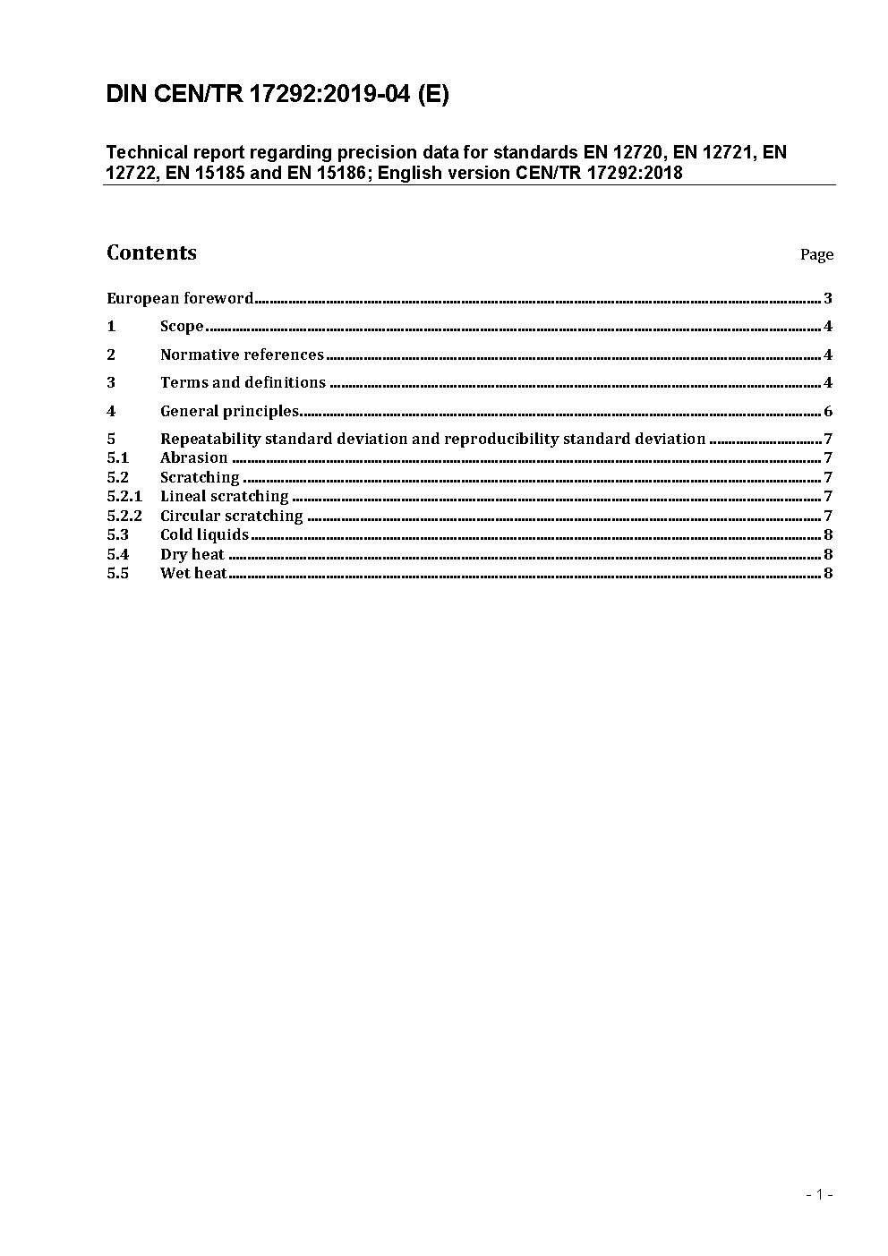 Technischer Bericht über Präzisionsdaten der Normen EN 12720, EN 12721, EN 12722, EN 15185 und EN 15186; Englische Fassung CEN/TR 17292:2018