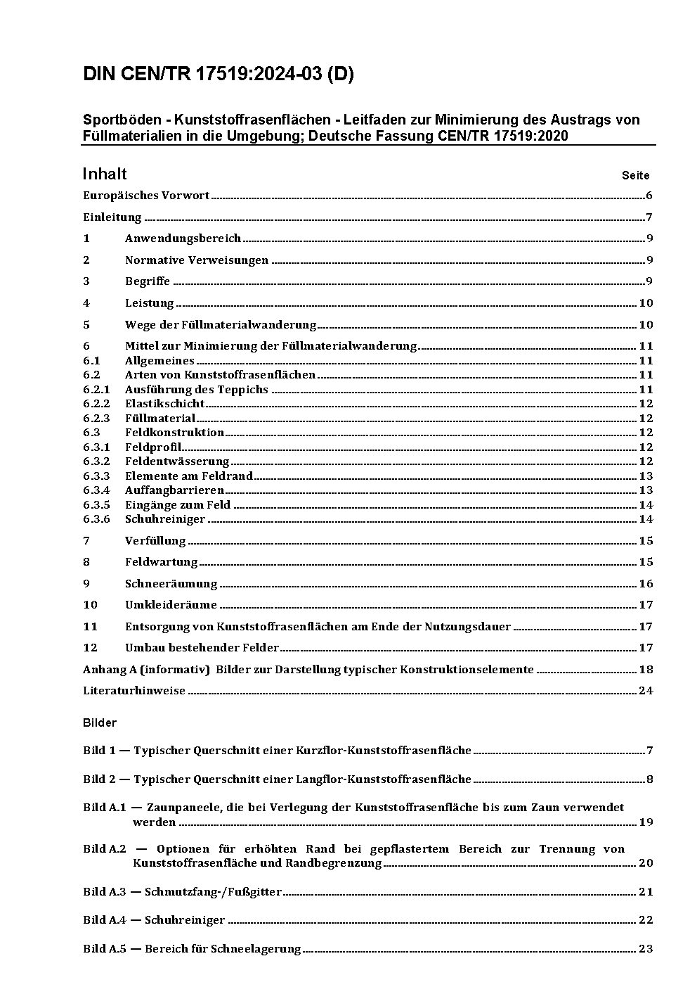 Sportböden - Kunststoffrasenflächen - Leitfaden zur Minimierung des Austrags von Füllmaterialien in die Umgebung; Deutsche Fassung CEN/TR 17519:2020