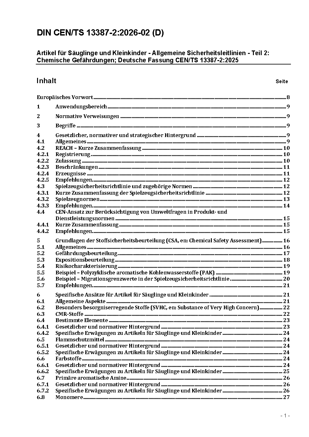 Child care articles - General safety guidelines - Part 2: Chemical hazards; German version CEN/TS 13387-2:2025