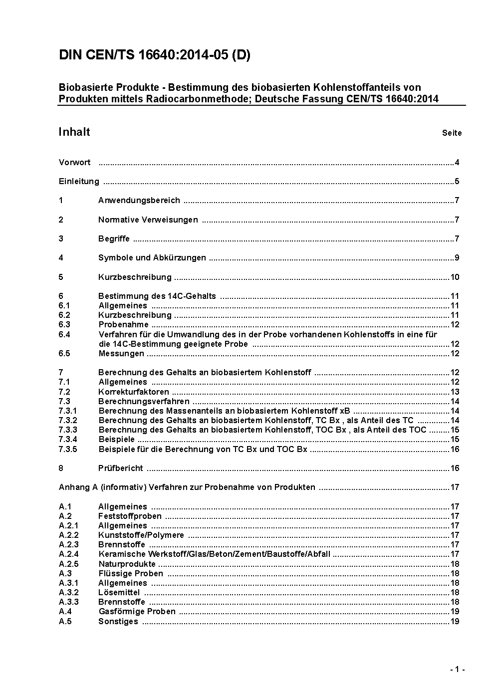 Bio-based products - Determination of the bio-based carbon content of products using the radiocarbon method; German version CEN/TS 16640:2014