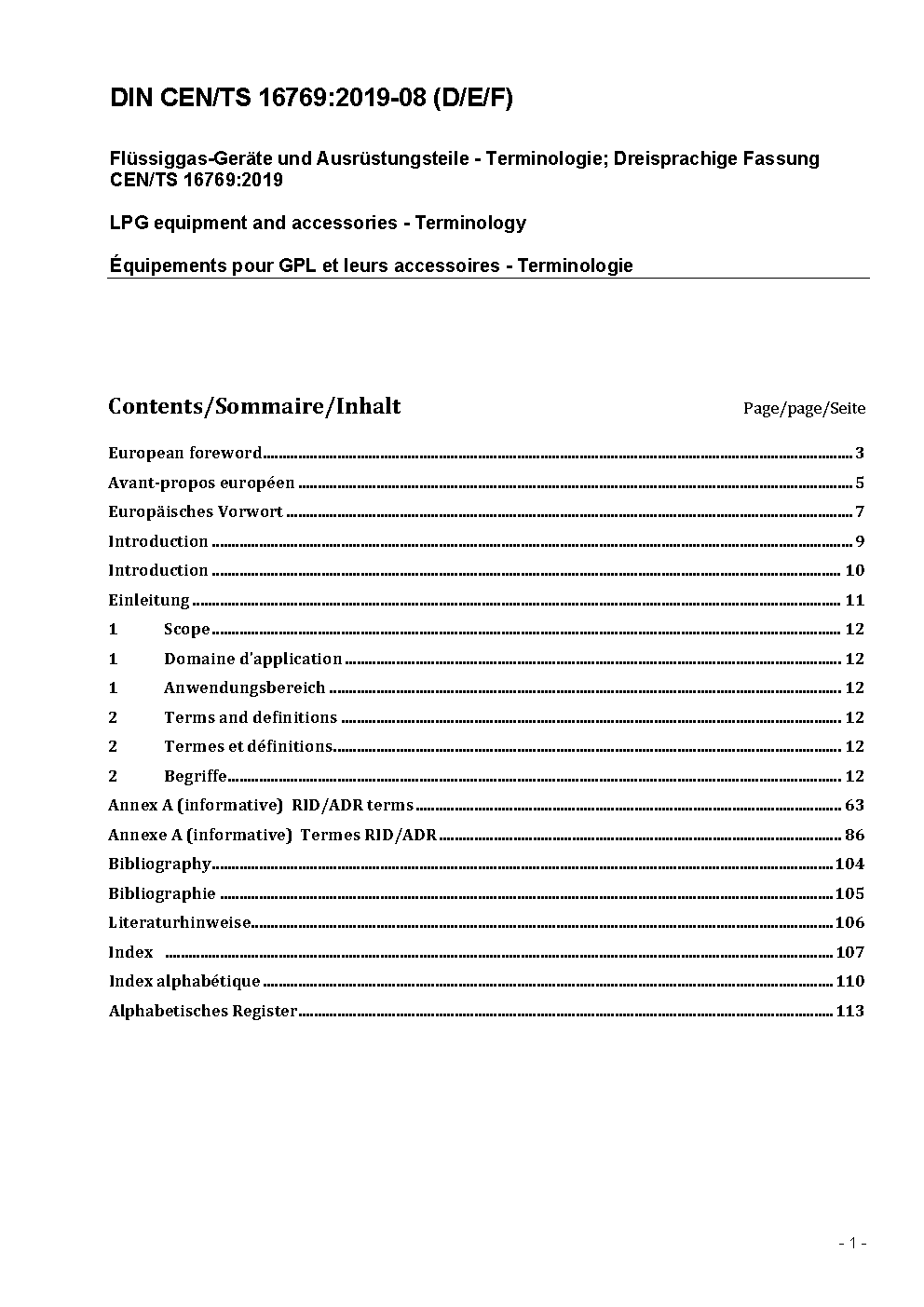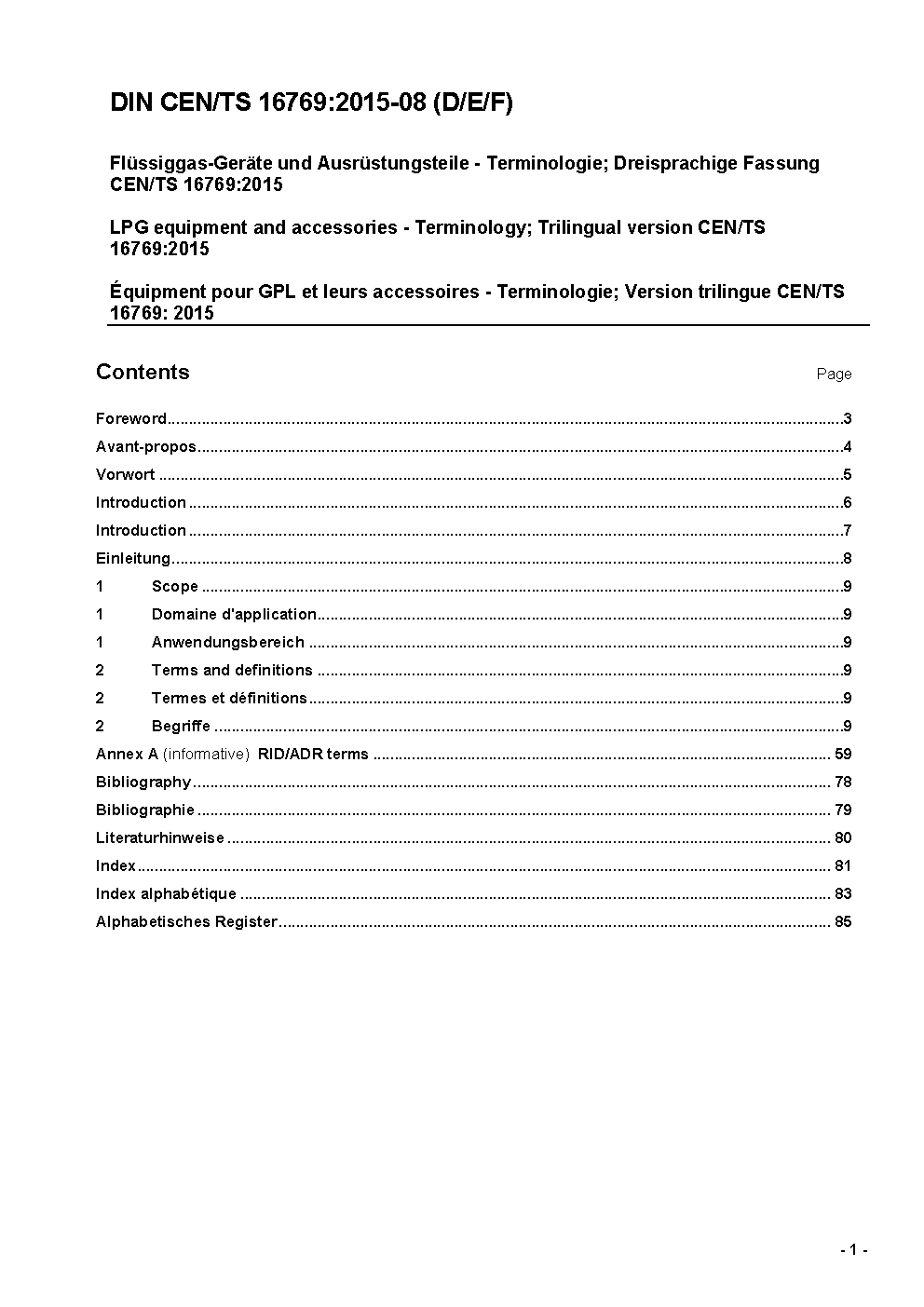 LPG equipment and accessories - Terminology; Trilingual version CEN/TS 16769:2015