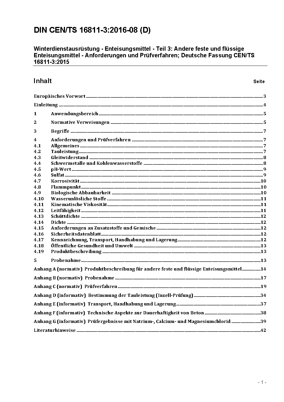 Winter service equipment and products - De-icing agents - Part 3: Other solid and liquid de-icing agents - Requirements and test methods; German version CEN/TS 16811-3:2015