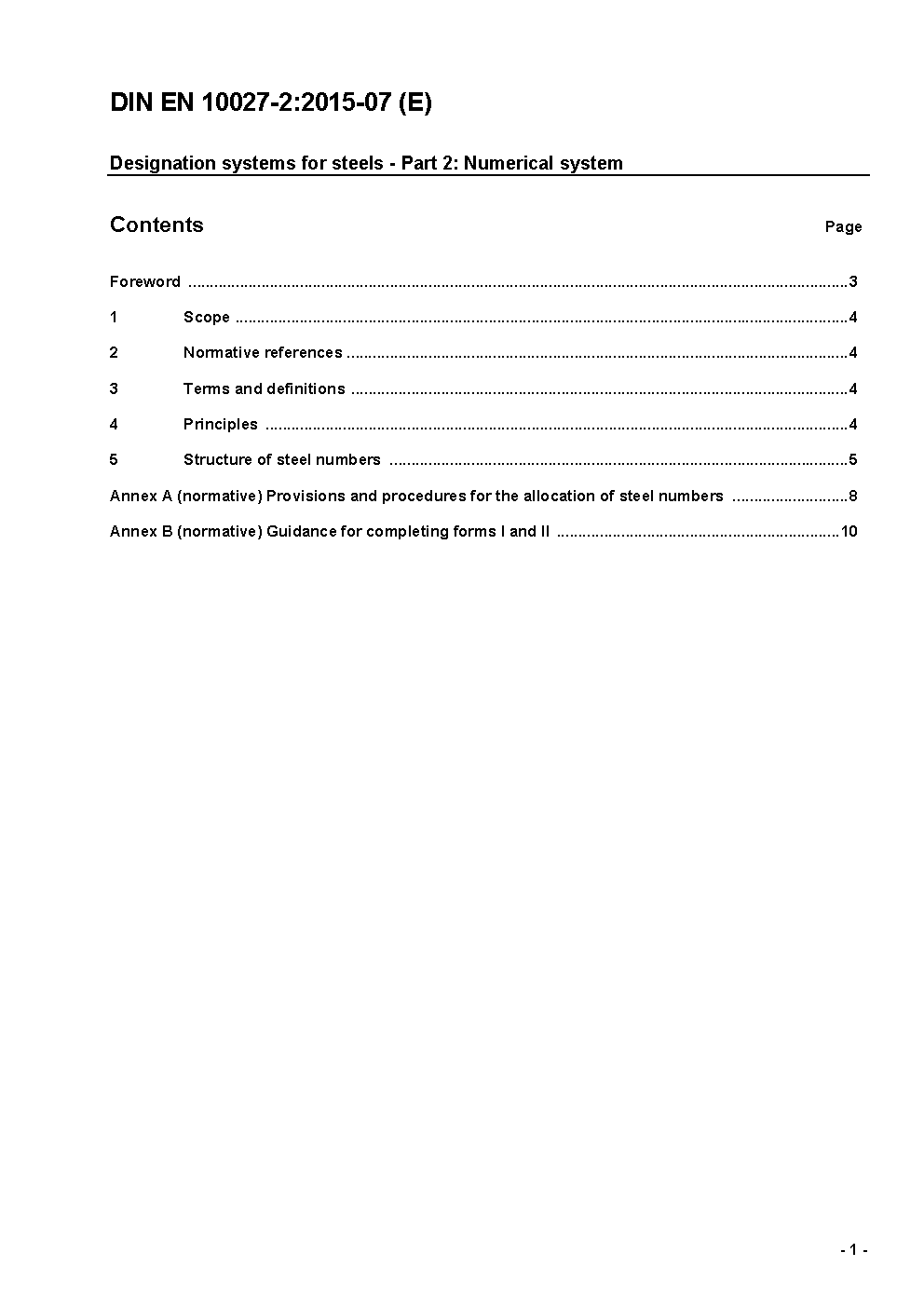 The document describes a numerical system for the designation of steels.