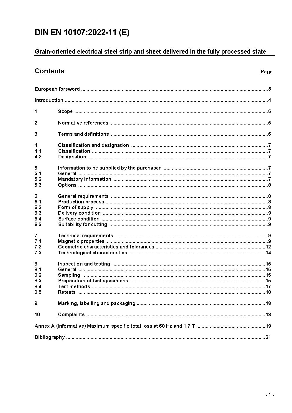 Grain-oriented magnetic steel sheet and strip; German version prEN 10107:1993