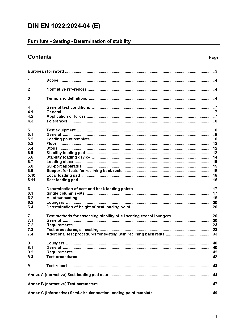 This document specifies test methods and requirements for the determination of the stability of all types of domestic seating for adults. The document does not apply to adjustable geometry seating where the backrest is at an angle of 10° or less to the horizontal.