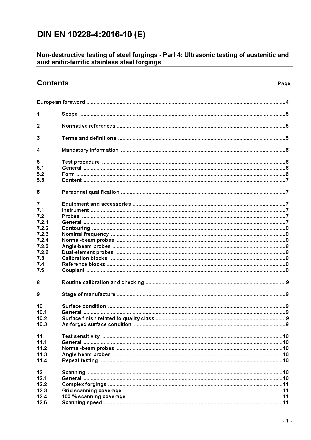 Non-destructive testing of steel forgings - Part 4: Ultrasonic testing of austenitic and austenitic-ferritic stainless steel forgings; German version EN 10228-4:2016