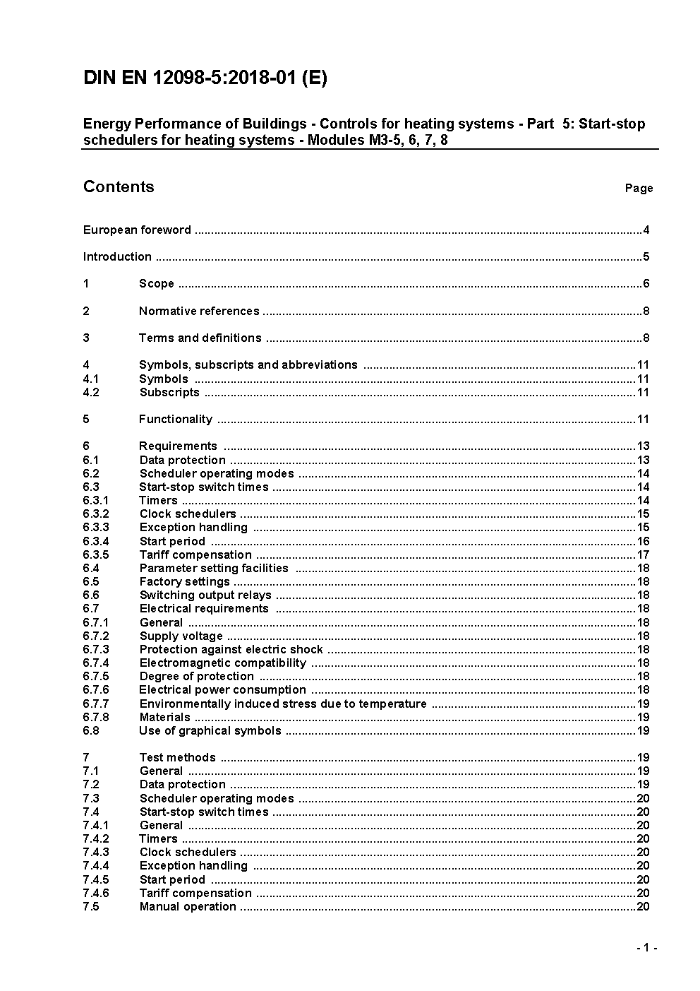 Controls for heating systems - Part 5: Start-stop schedulers for heating systems; German version EN 12098-5:2005