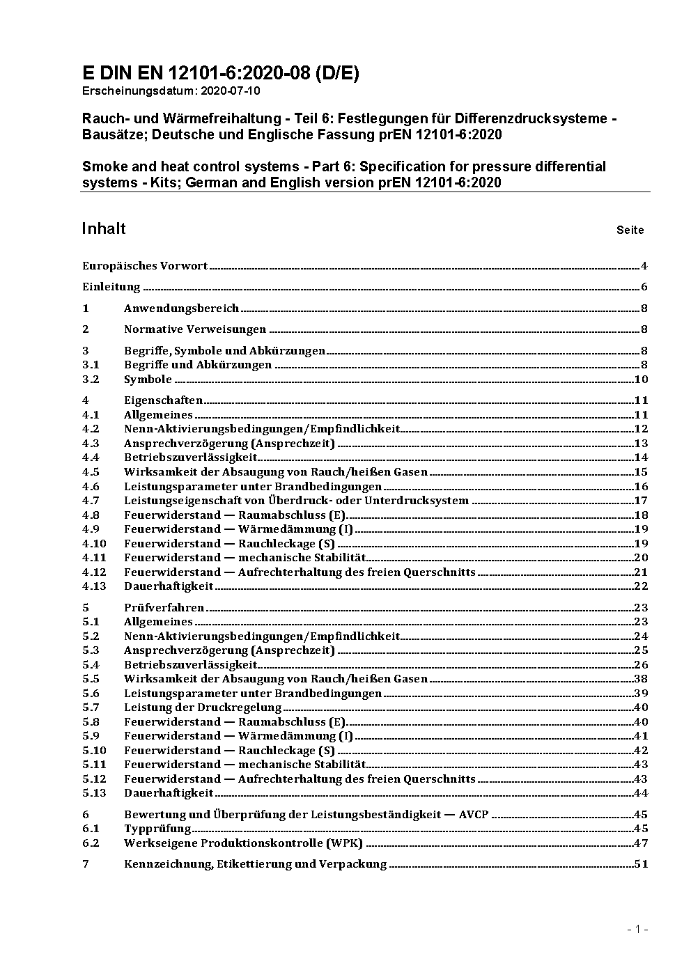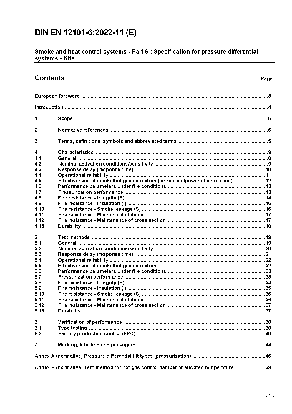This Standard describes pressure differential systems designed to hold back smoke at a leaky physical barrier in a building, such as a door (either open or closed) or other similarly restricted openings. This Standard gives test procedures for the systems used, as well as describing relevant and critical features of the installation and commissioning procedures needed to implement the calculated design in a building.