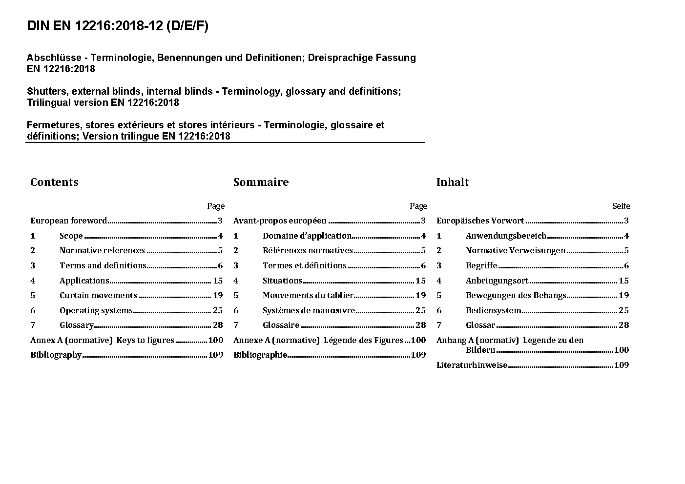 Shutters, external blinds, internal blinds - Terminology, glossary and definitions; Trilingual version EN 12216:2002