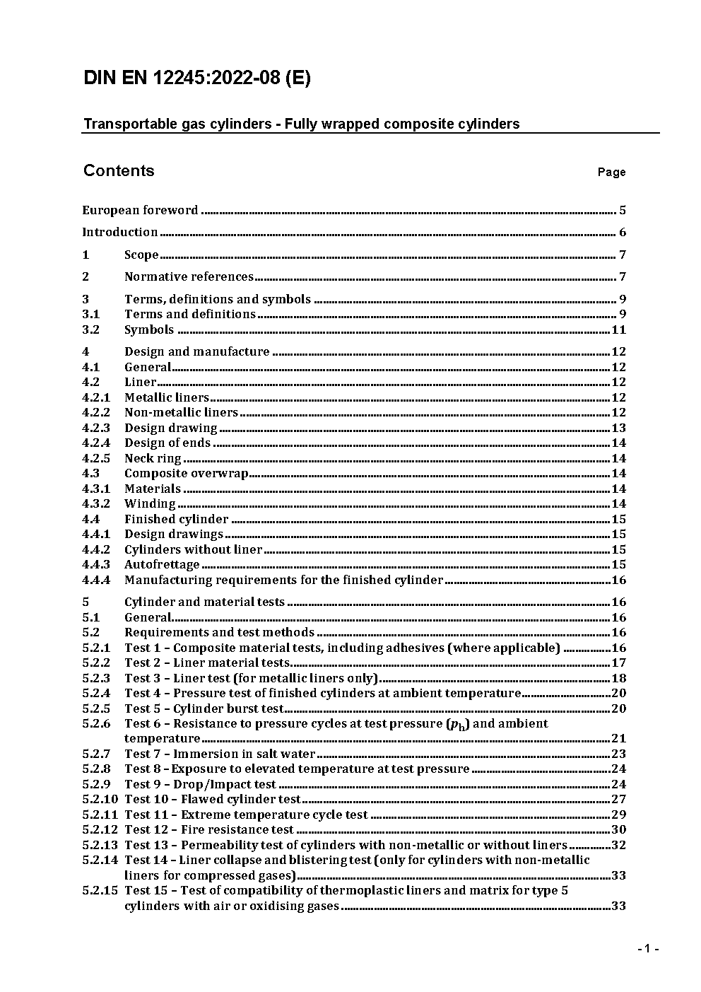 This European Standard specifies minimum requirements for the materials, design, construction, prototype testing and routine manufacturing inspections of composite gas cylinders with a water capacity up to and including 450 l for compressed, liquefied and dissolved gases.