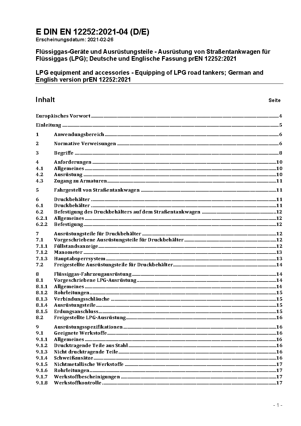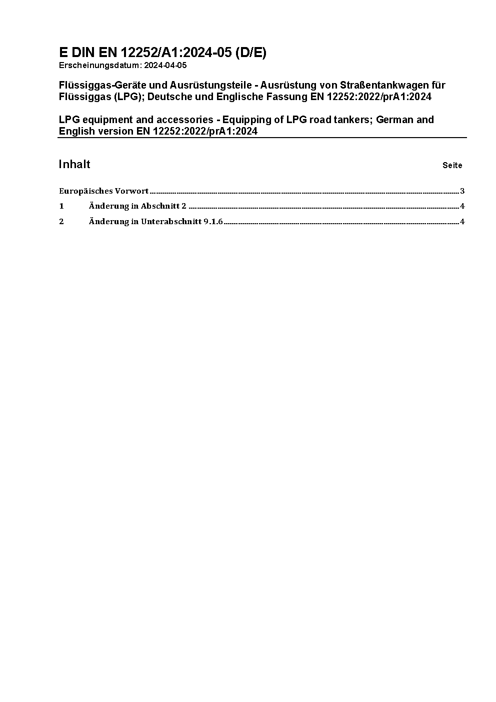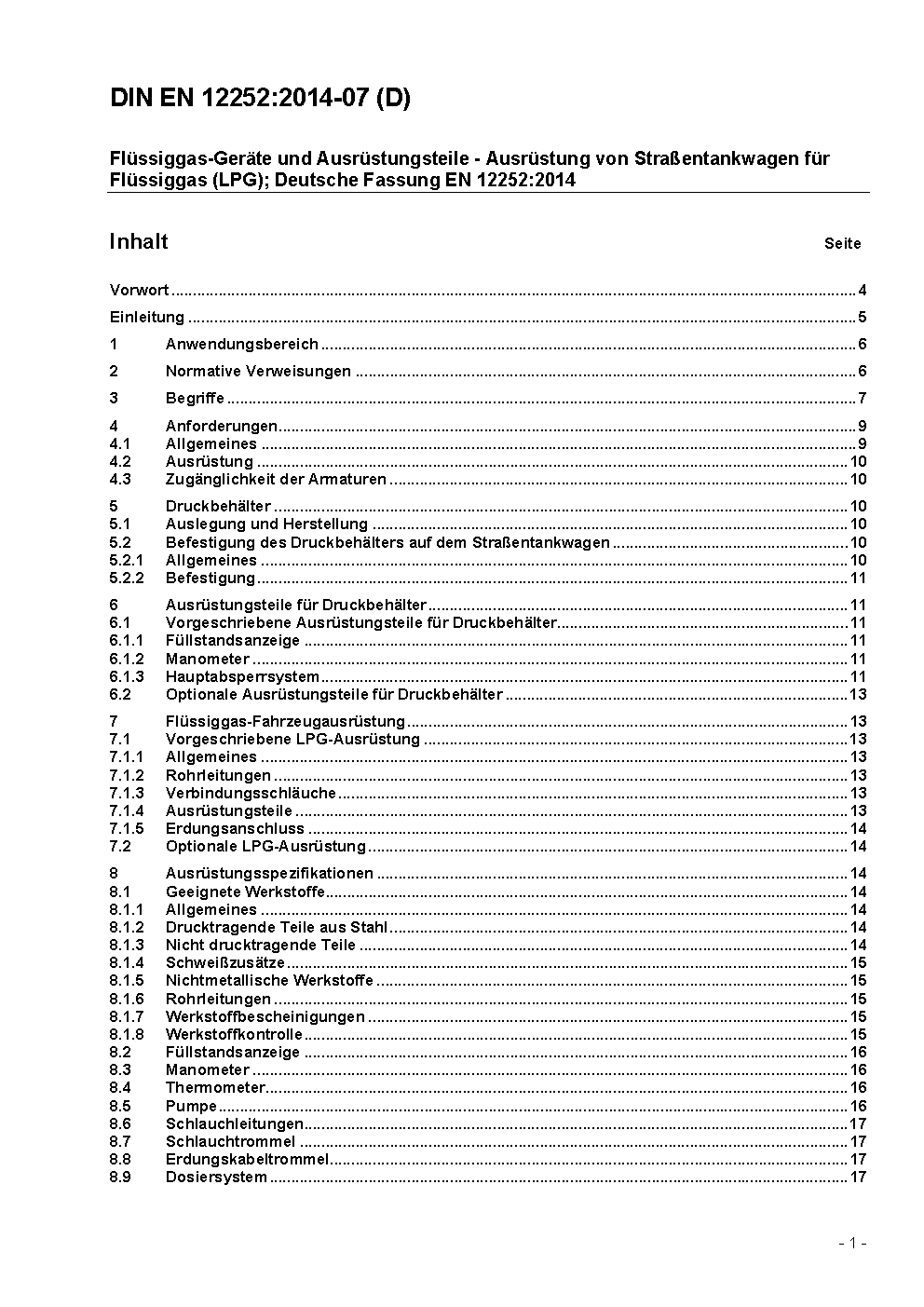 LPG equipment and accessories - Equipping of LPG road tankers; German version EN 12252:2012