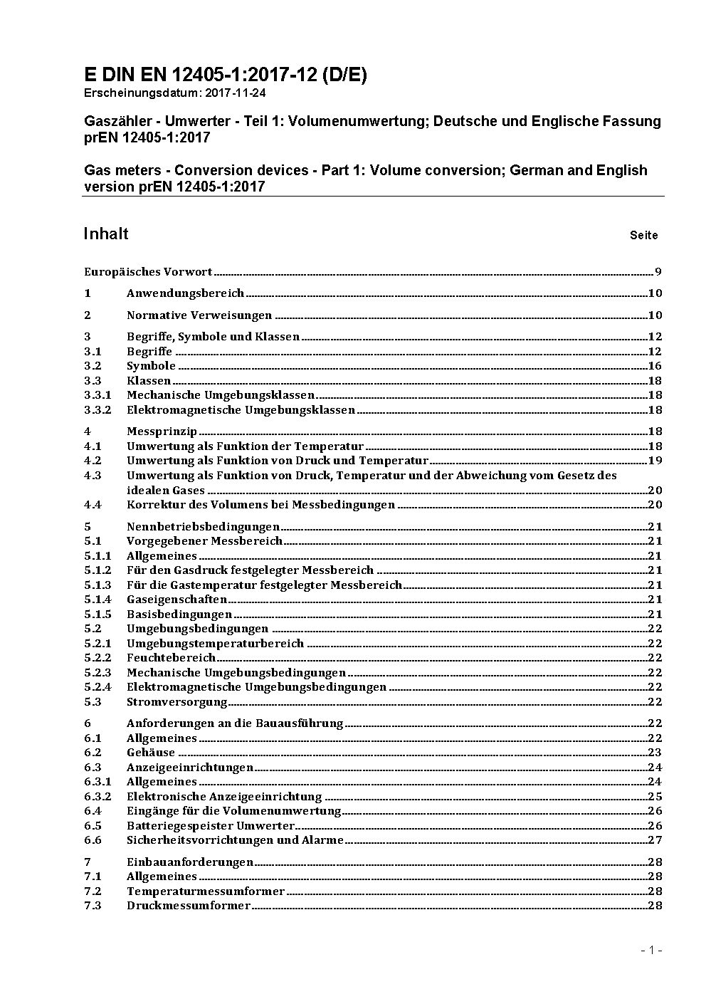 Gas meters - Conversion devices - Part 1: Volume conversion; German and English version prEN 12405-1:2017