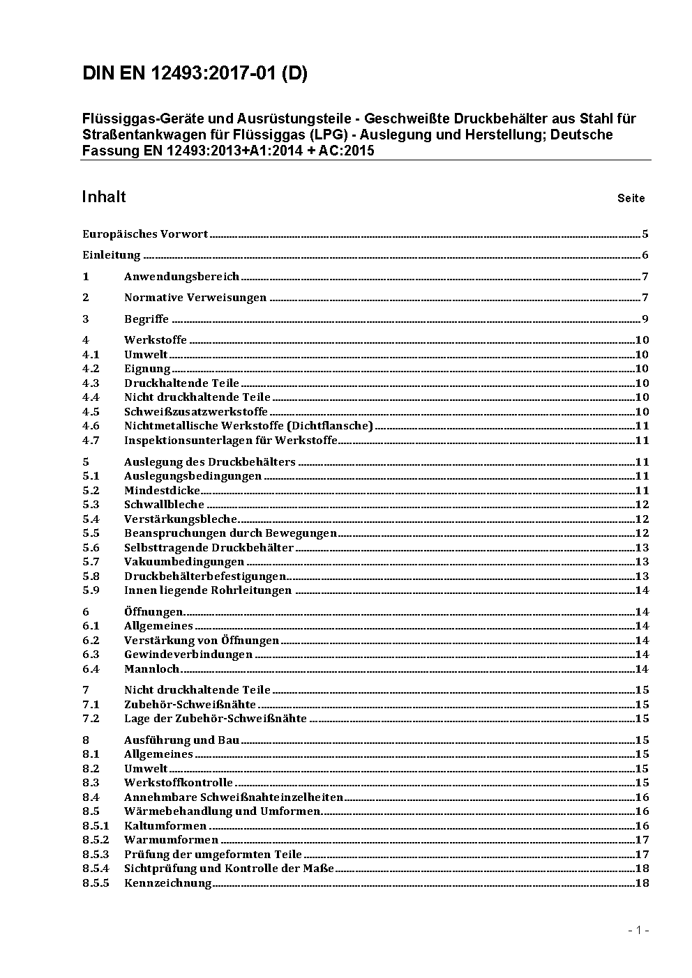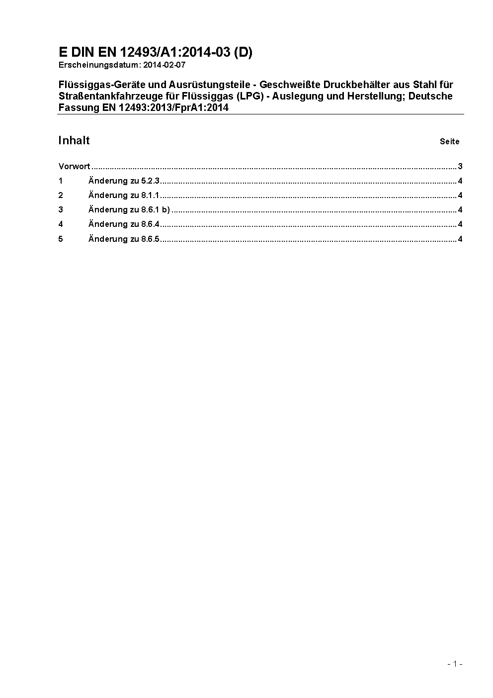 LPG equipment and accessories - Welded steel pressure vessels for LPG road tankers - Design and manufacture; German and English version EN 12493:2013+A1:2014/prA2:2016