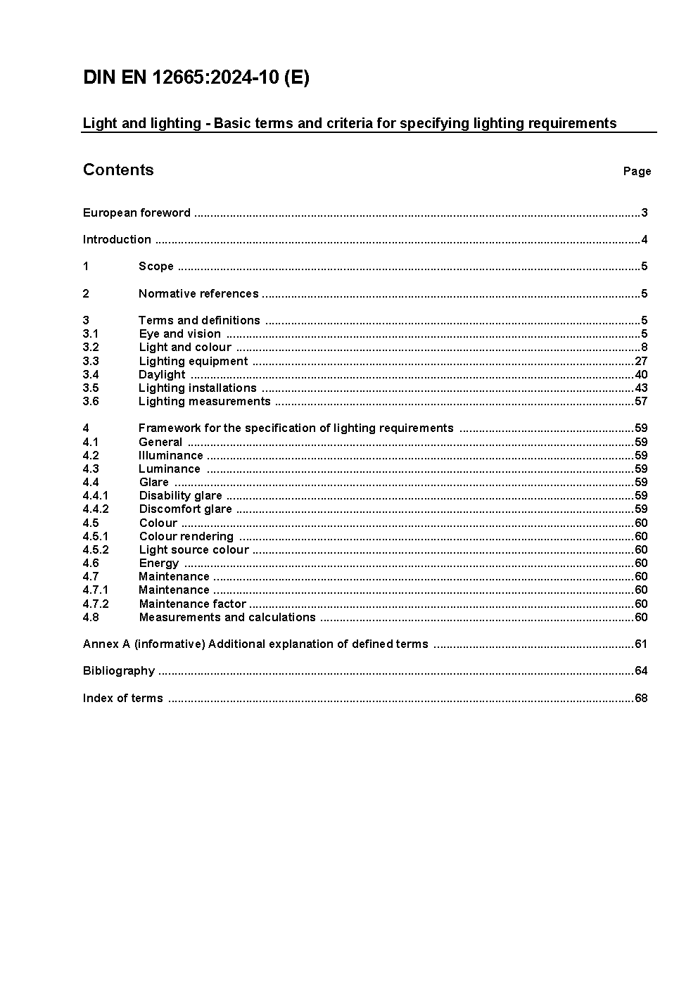 This document defines basic terms and definitions for use in all lighting applications. This document also sets out a framework for the specification of lighting requirements, giving details of aspects that are to be considered when setting those requirements.