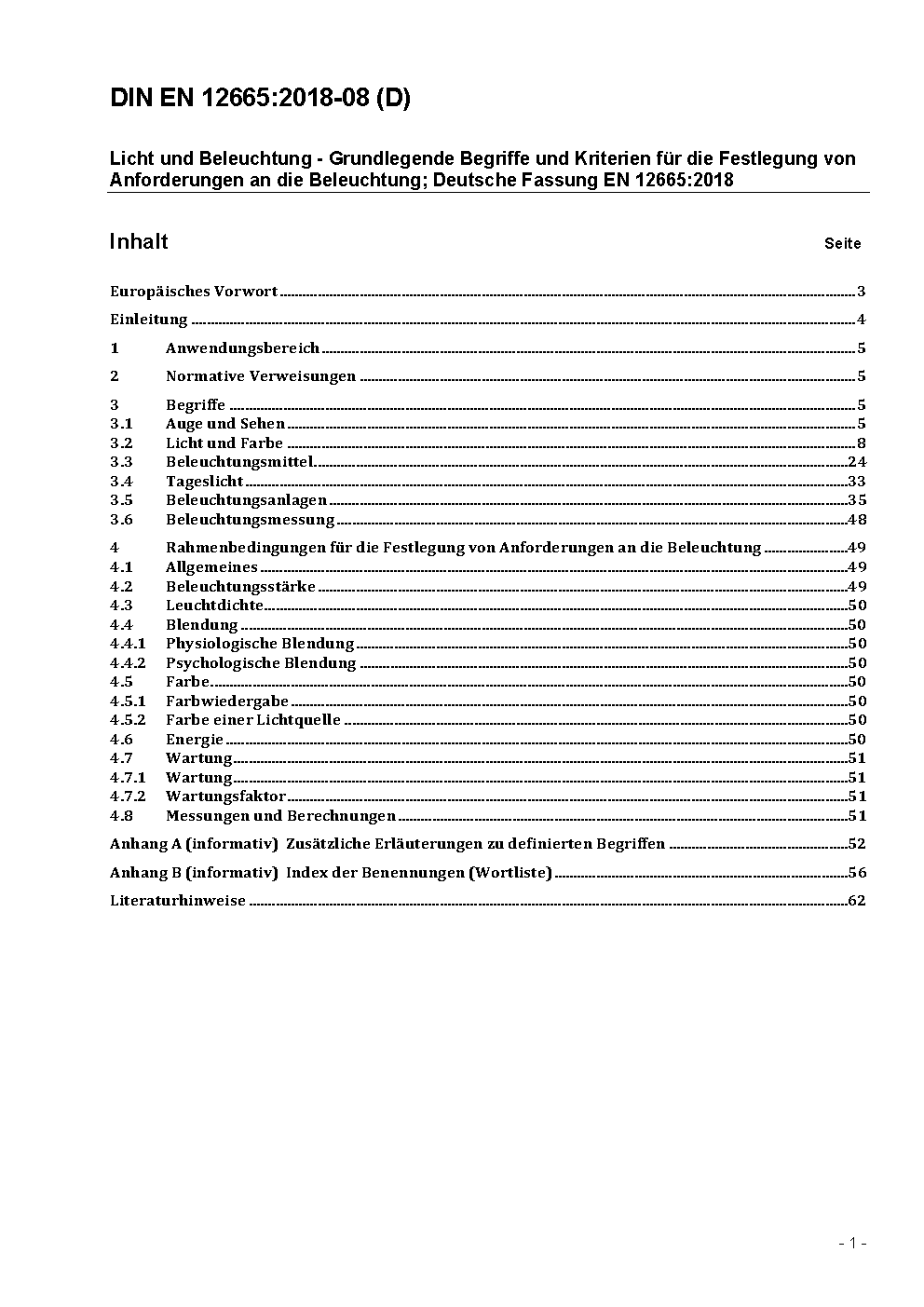 Light and lighting - Basic terms and criteria for specifying lighting requirements; German version EN 12665:2018