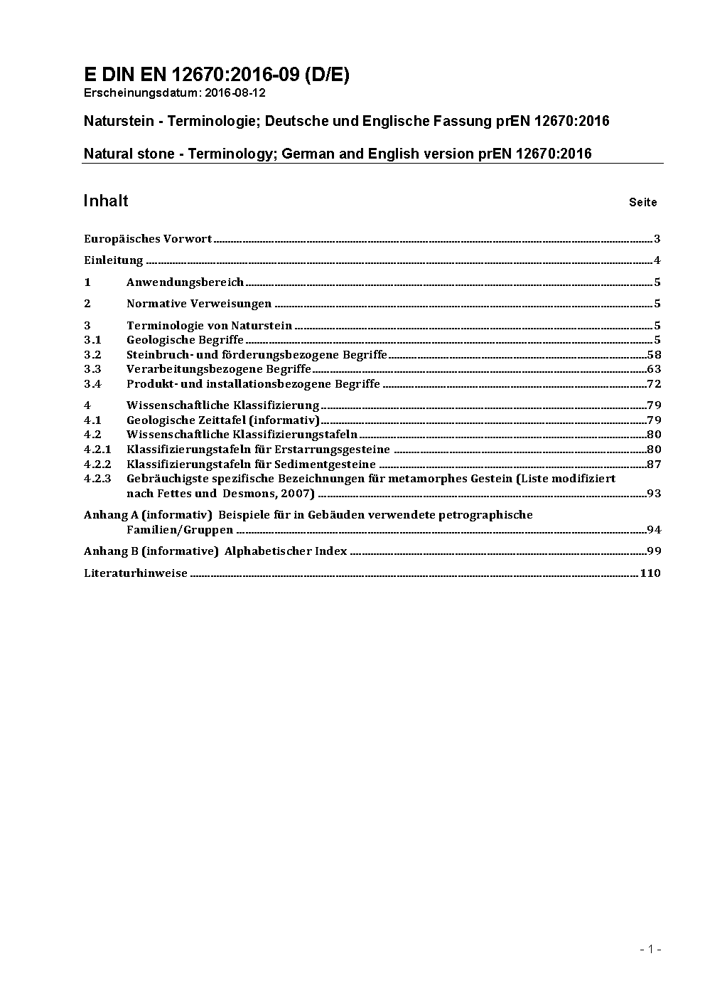 The document provides the recommended terminology covering scientific and technical terms, test methods, products and other uses of natural stone