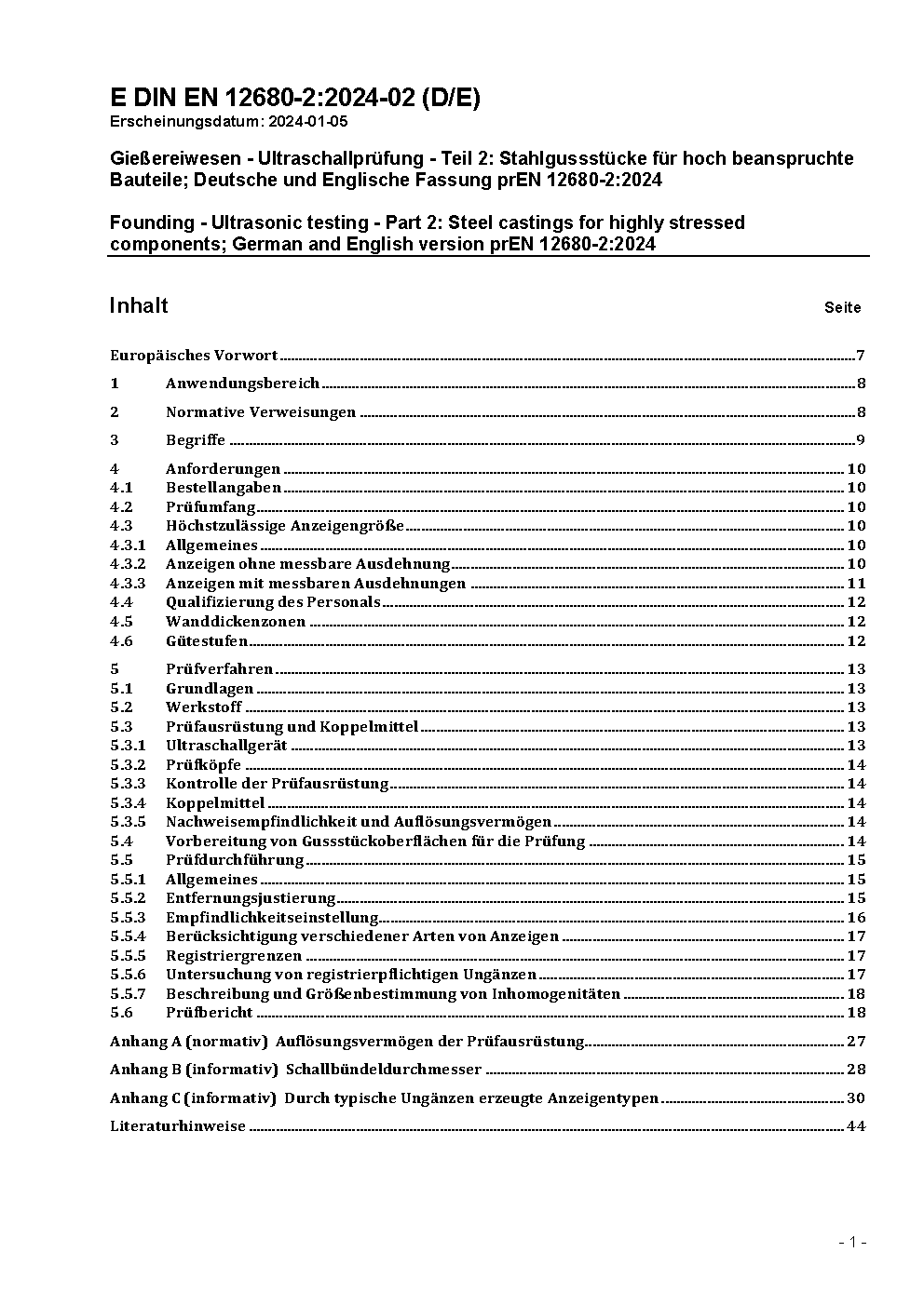 Gießereiwesen - Ultraschallprüfung - Teil 2: Stahlgussstücke für hoch beanspruchte Bauteile; Deutsche Fassung EN 12680-2:2025