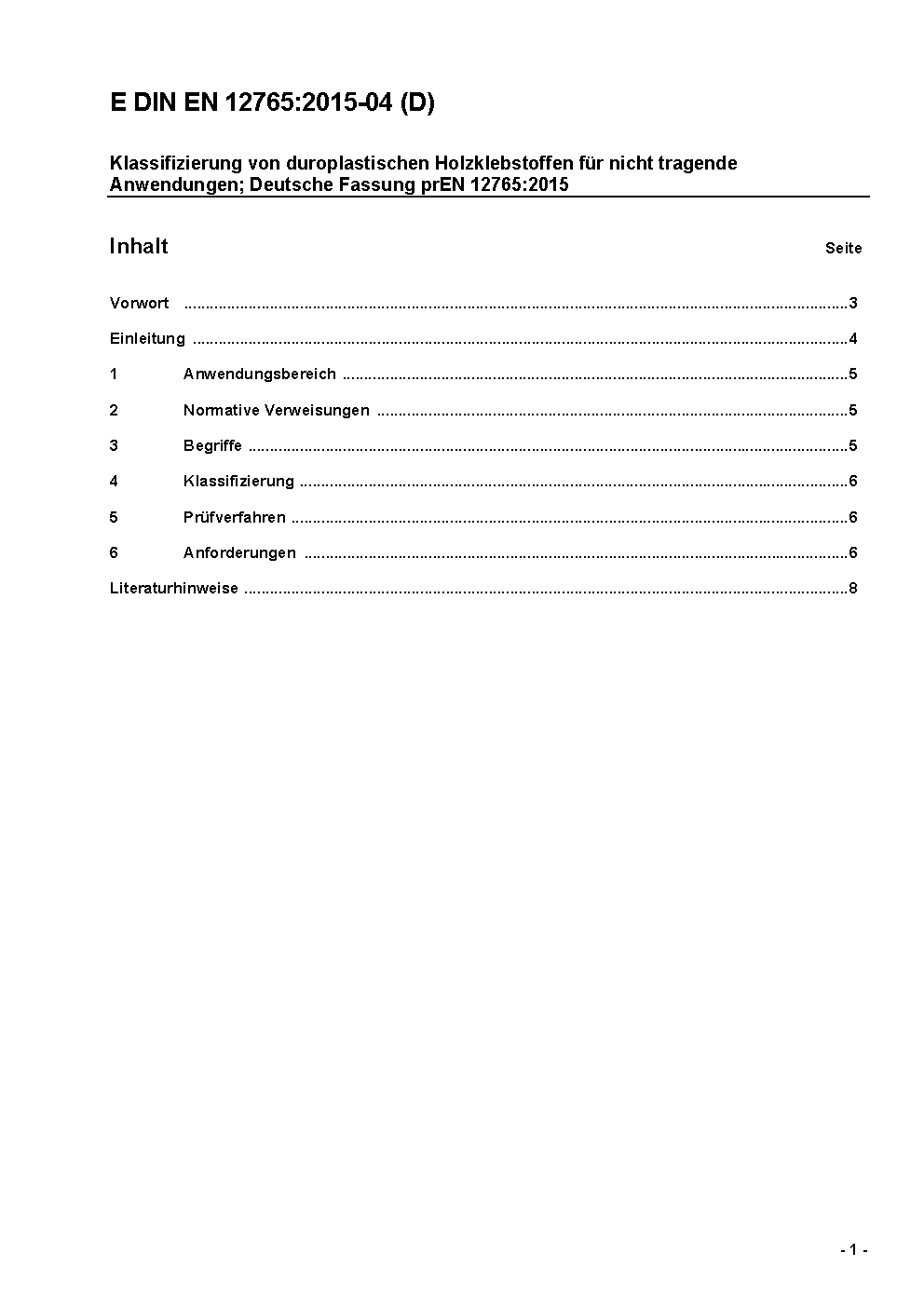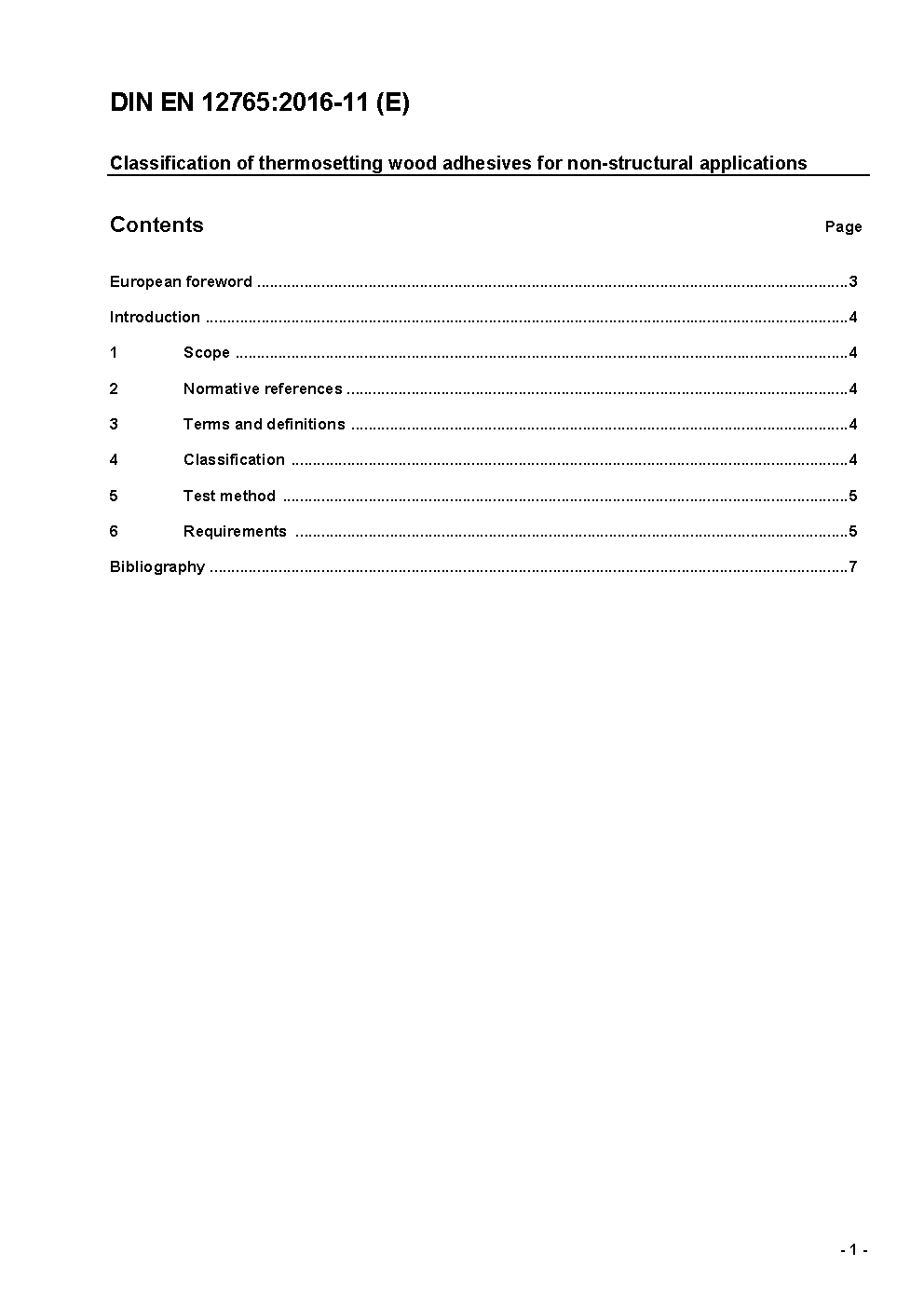 Classification of thermosetting wood adhesives for non-structural applications; German version EN 12765:2016