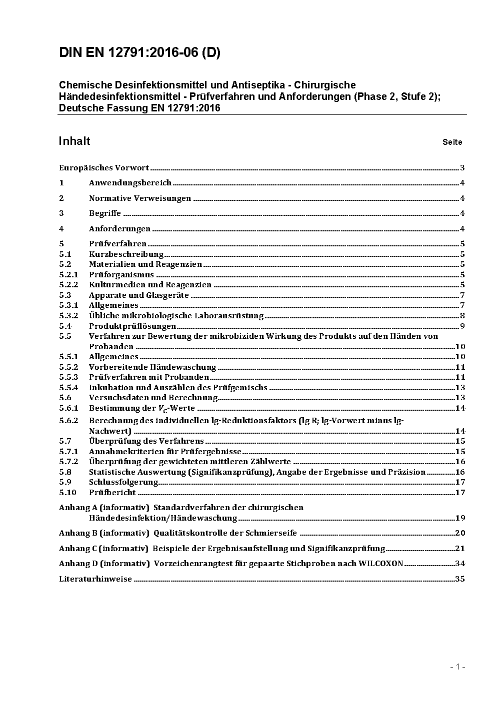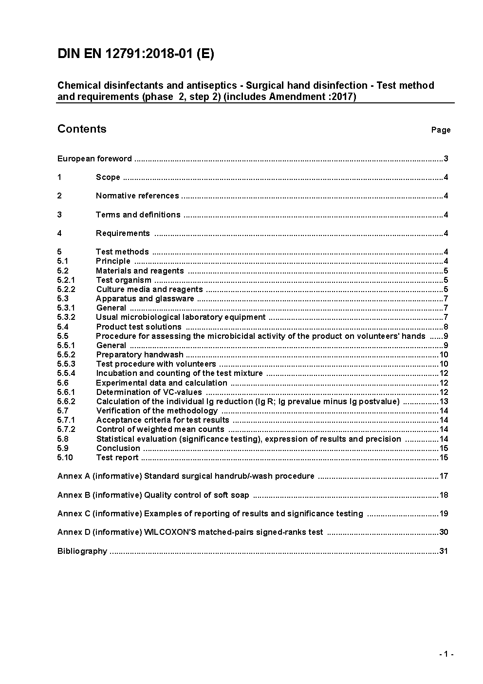Chemical disinfectants and antiseptics - Surgical hand disinfection - Test method and requirements (phase 2, step 2); German version EN 12791:2016
