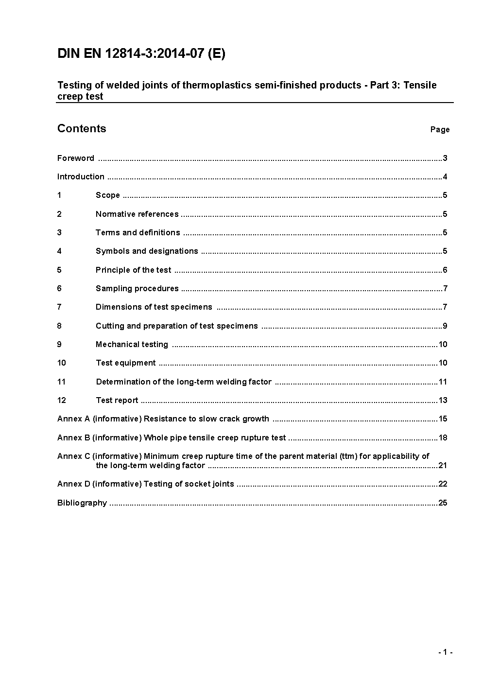 Testing of welded joints of thermoplastics semi-finished products - Part 3: Tensile creep test; German version EN 12814-3:2000/prA1:2004