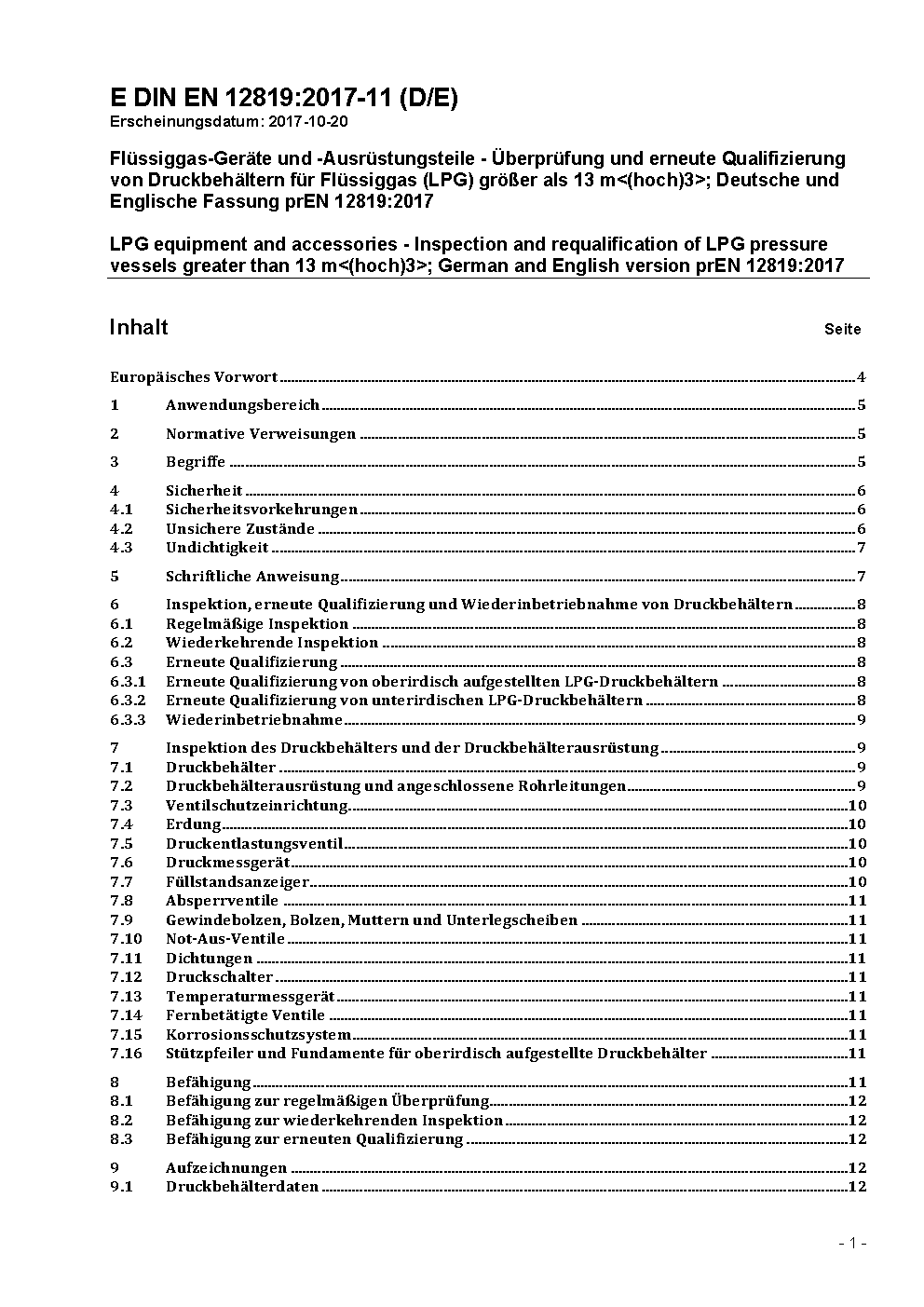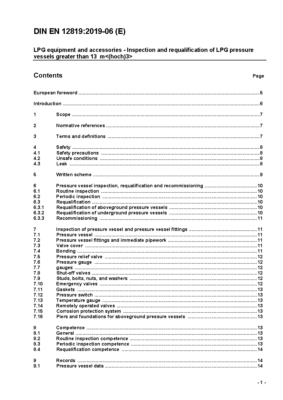 Inspection and requalification of LPG tanks greater than 13 m<(hoch)3> overground; German version EN 12819:2002