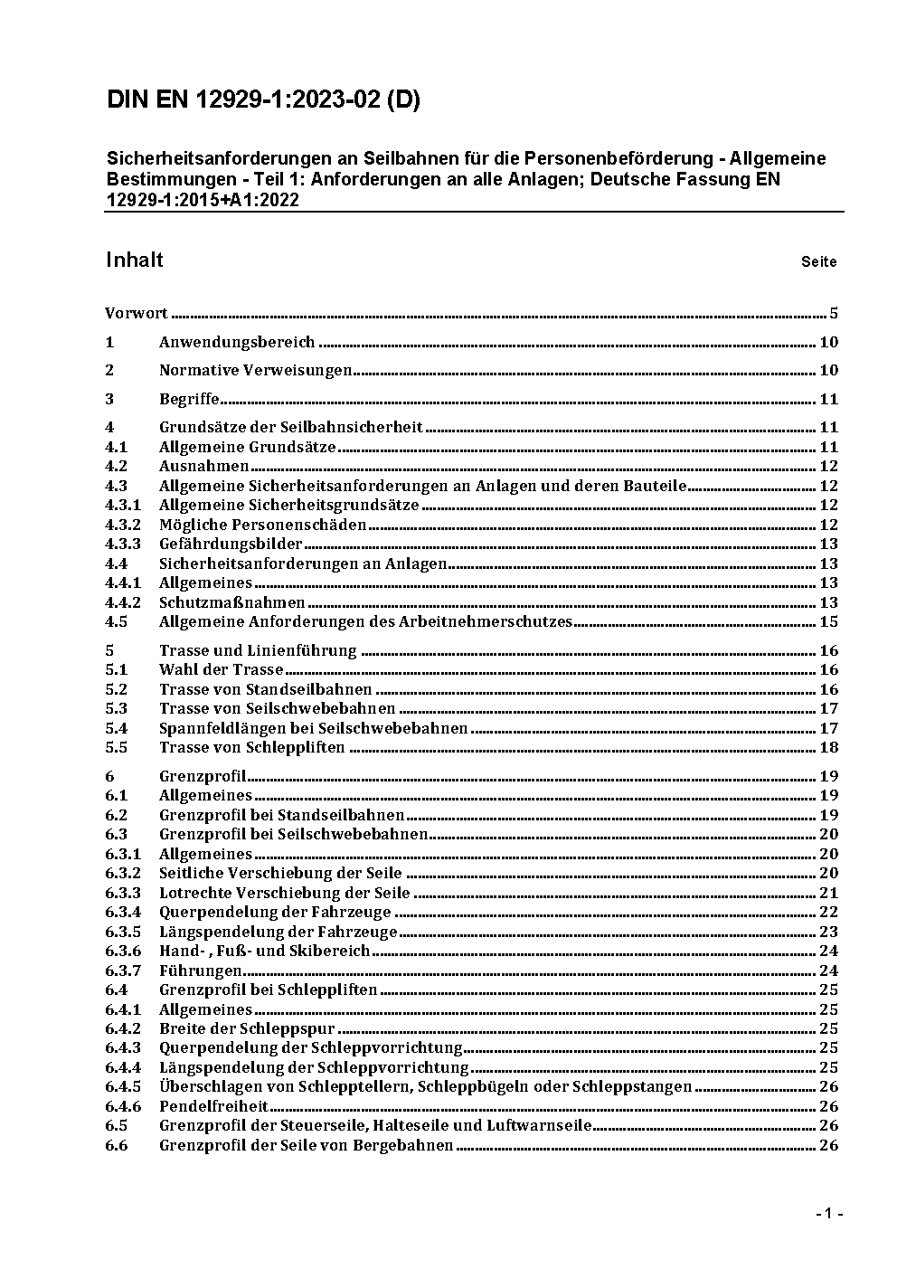 Safety requirements for cableway installations designed to carry persons - General requirements - Part 1: Requirements for all installations; German version EN 12929-1:2015