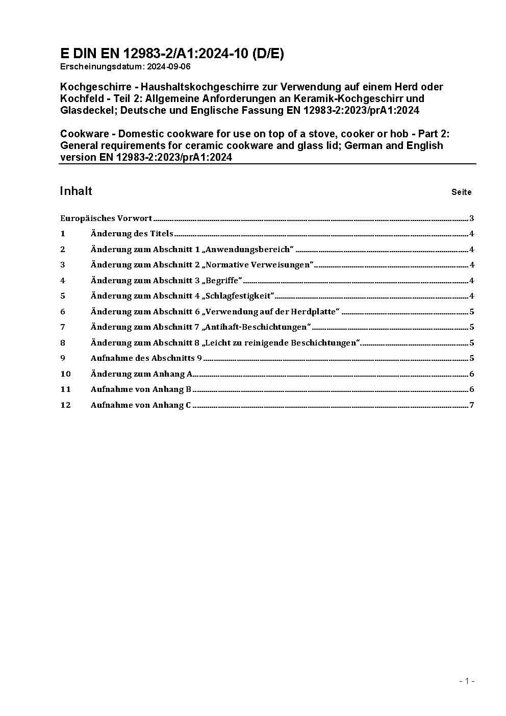 Cookware - Domestic cookware for use on top of a stove, cooker or hob - Part 2: General requirements for ceramic cookware; German and English version prEN 12983-2:2020