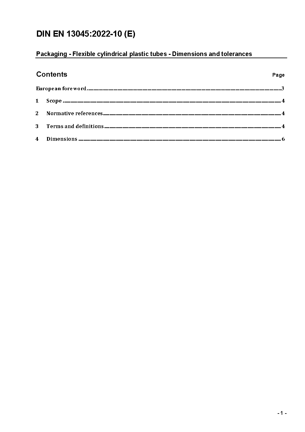 This document specifies the diameter, length, wall thickness and shoulder geometry of cylindrical plastic flexible tubes. It is applicable to tubes used for packing pharmaceutical, cosmetic, hygiene, food and other domestic and industrial products.
