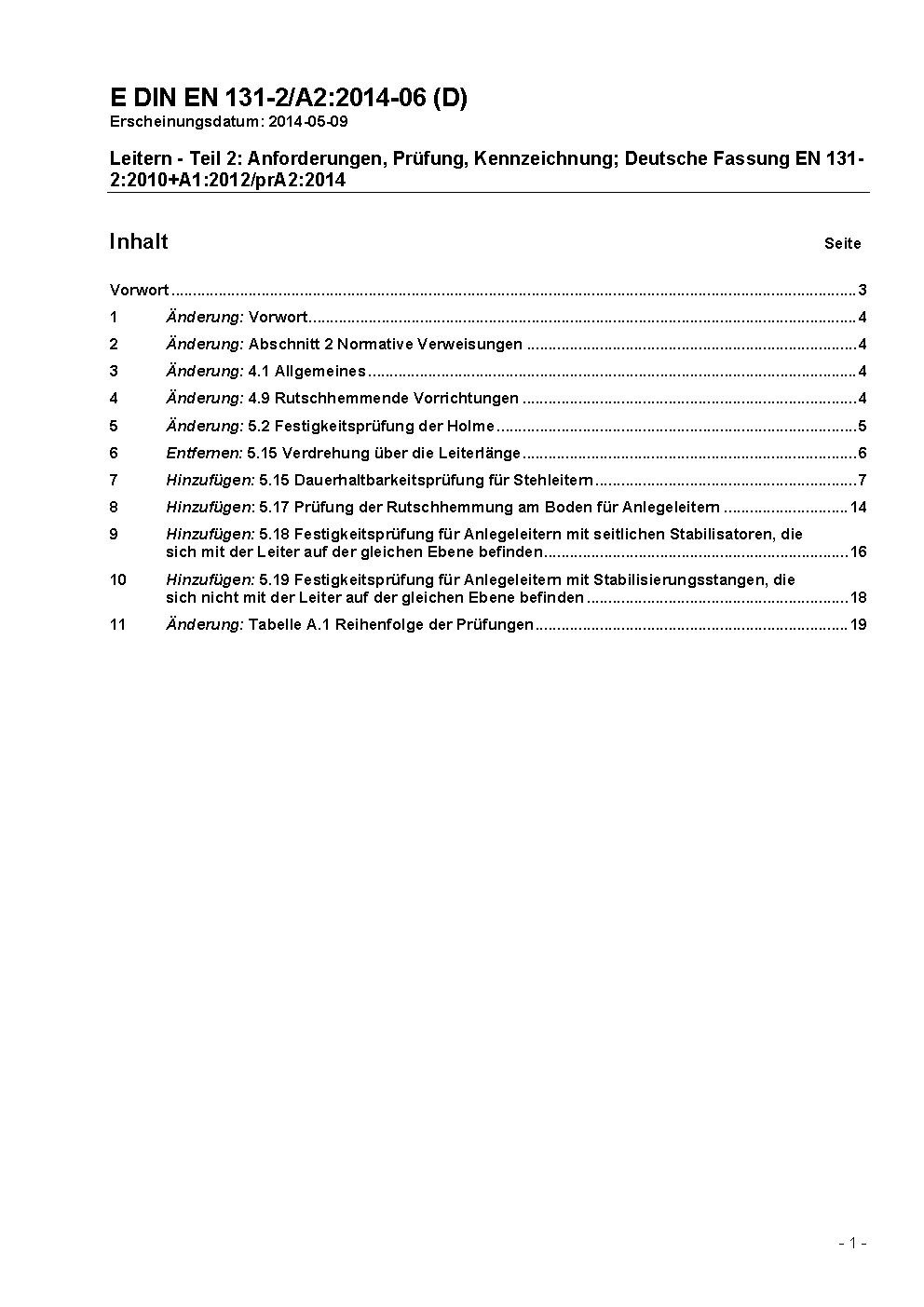Ladders - Part 2: Requirements, testing, marking; German version EN 131-2:2010+A1:2012.