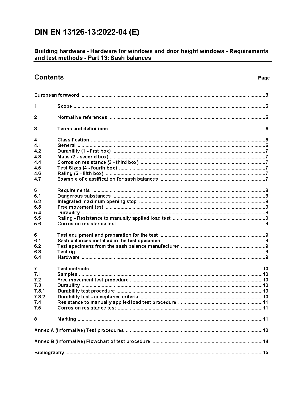 Building hardware - Hardware for windows and door height windows - Requirements and test methods - Part 13: Sash balances; German and English version prEN 13126-13:2020