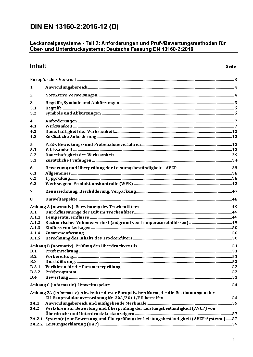 Leak detection systems - Part 2: Requirements and test/assessment methods for pressure and vacuum systems; German version EN 13160-2:2016