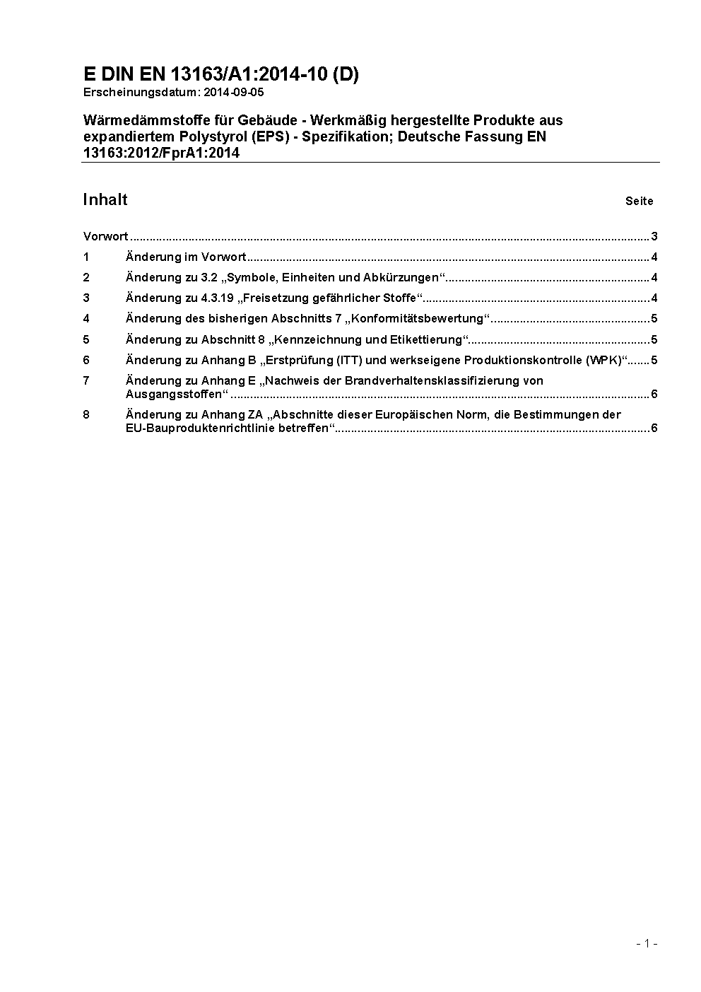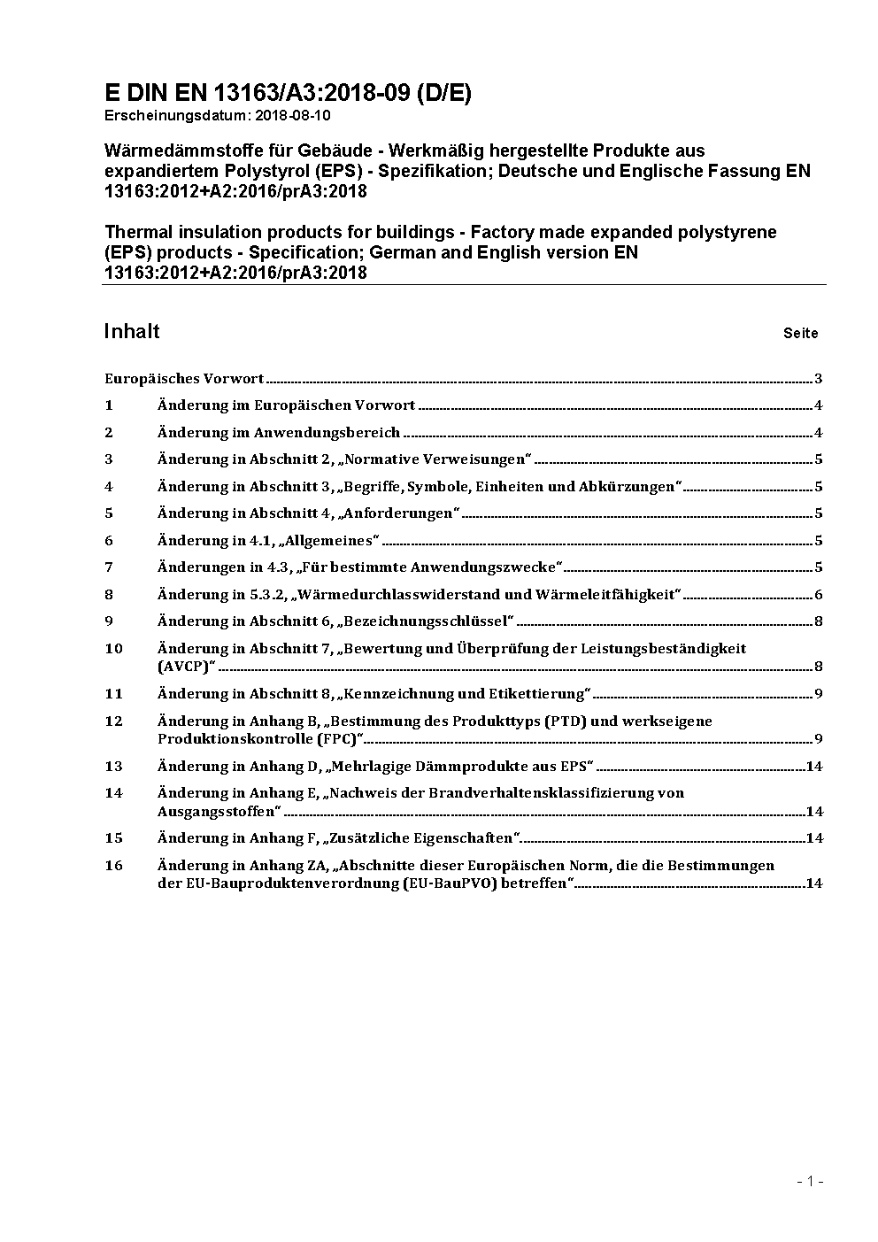 Thermal insulation products for buildings - Factory made products of expanded polystyrene - Specification; German version prEN 13163:1998