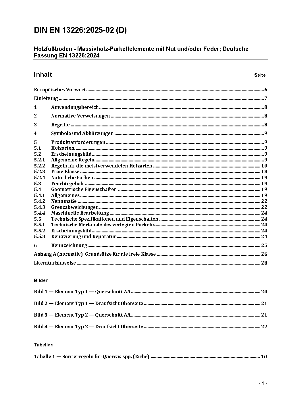 Holzfußböden - Massivholz-Parkettelemente mit Nut und/oder Feder; Deutsche Fassung EN 13226:2024