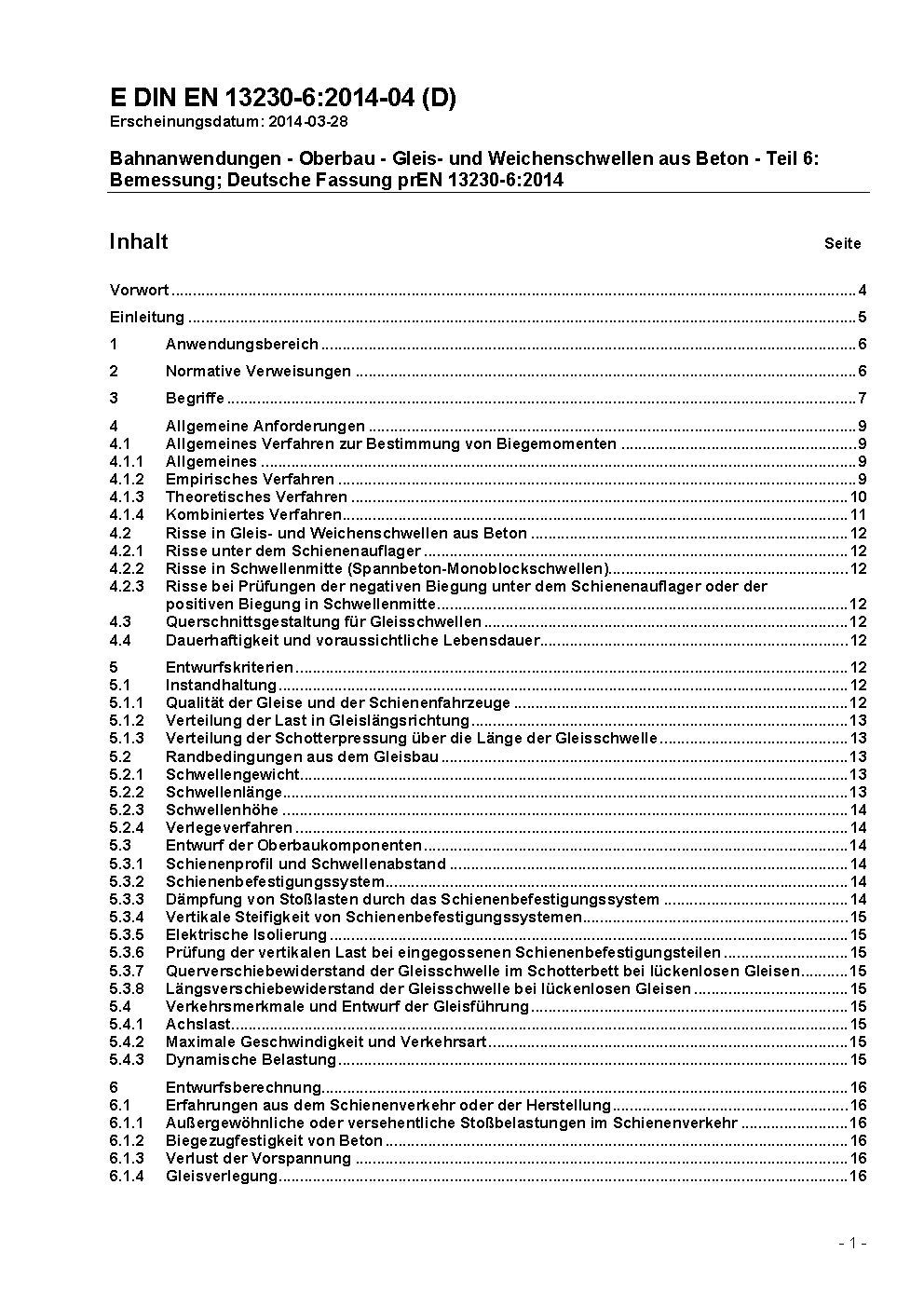 Railway applications - Track - Concrete sleepers and bearers - Part 6: Design; German and English version prEN 13230-6:2015
