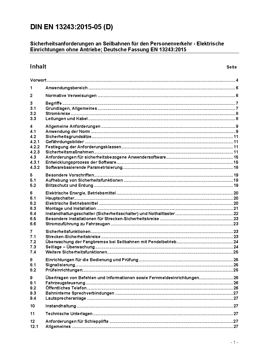 Safety requirements for cableway installations designed to carry persons - Electrical equipment other than for drive systems; German version EN 13243:2015