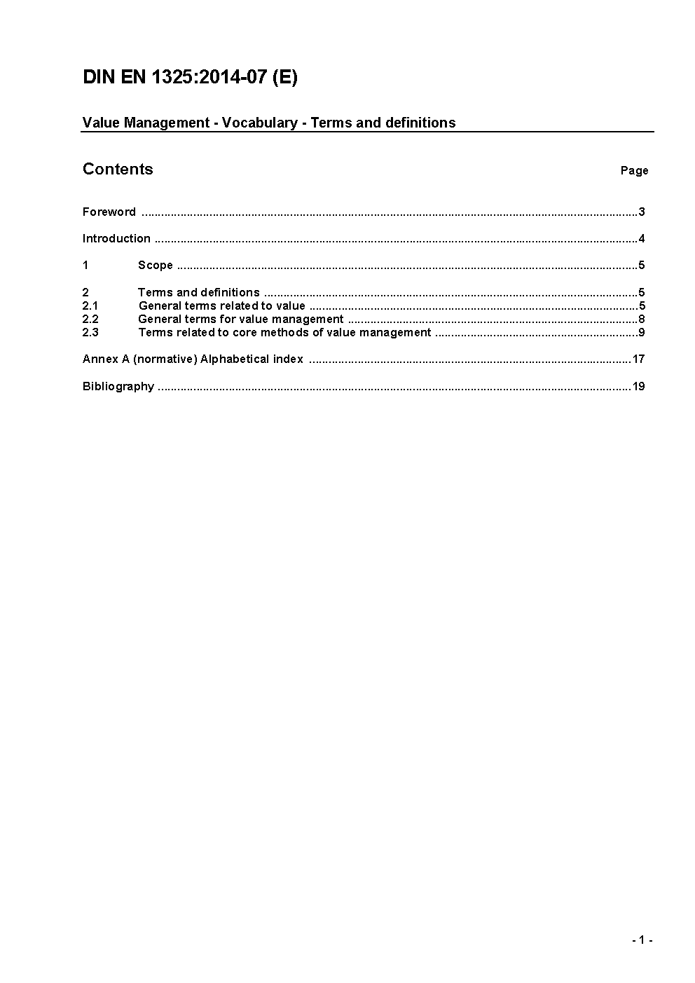 This document defines principal terms of Value Management, Value Analysis and Functional Analysis. It will combined the former two parts of EN 1325. It will take into account the needs of the WG2 (value management), WG3(functional analysis) and WG4 (implementation of EN 12973) concerning the terms to de defined.