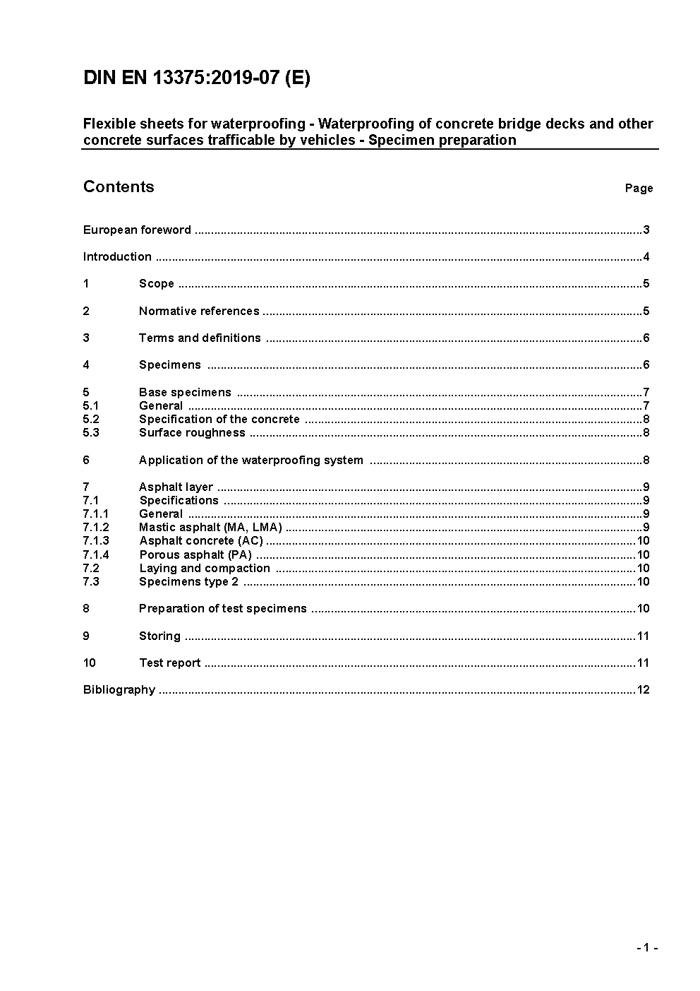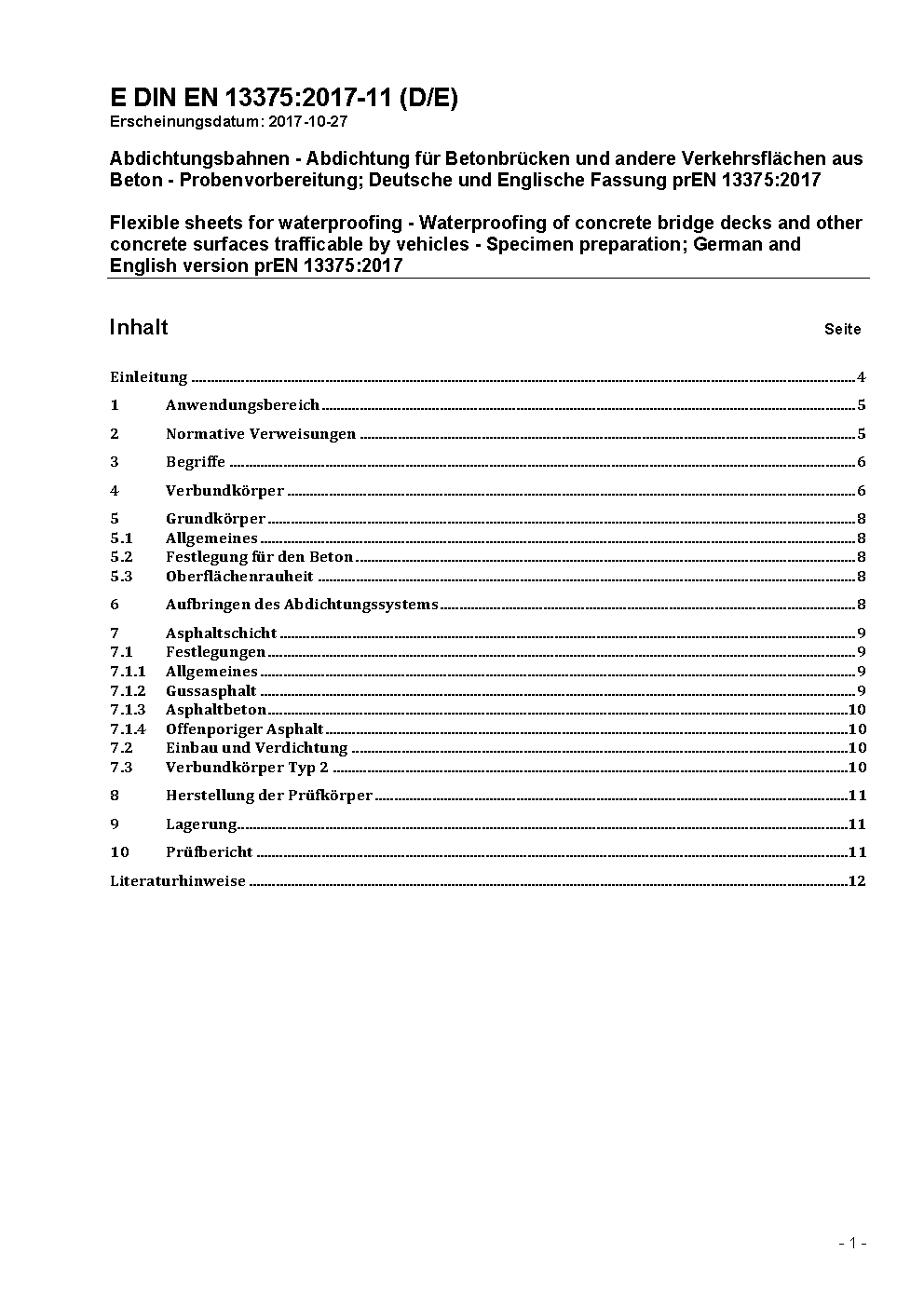 Flexible sheets for waterproofing - Waterproofing of concrete bridge decks and other concrete surfaces trafficable by vehicles - Specimen preparation; German and English version prEN 13375:2017