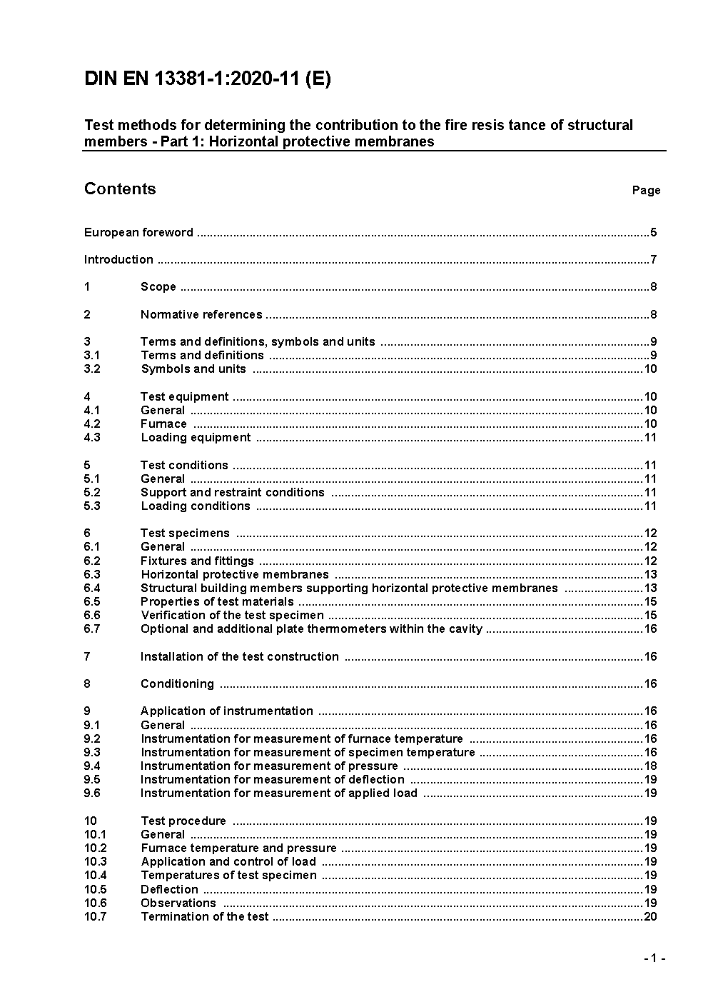 Test methods for determining the contribution to the fire resistance of structural members - Part 1: Horizontal protective membranes; German version prEN 13381-1:2008
