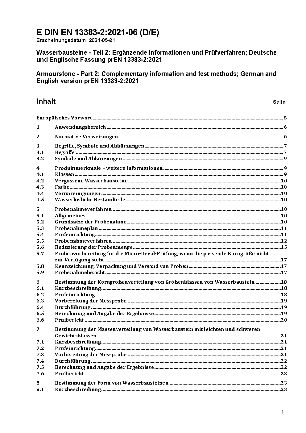 This European Standard specifiestest methods for natural, artificial and recycled aggregates for use as armourstone.